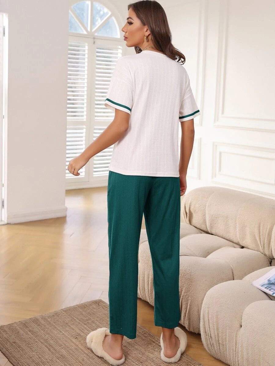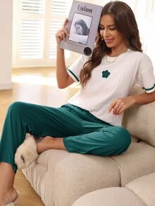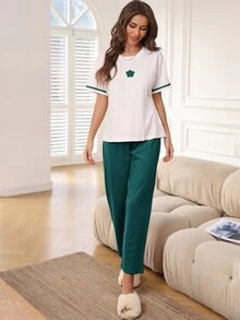 Ensemble de pyjama à imprimé floral à ourlet à rayures