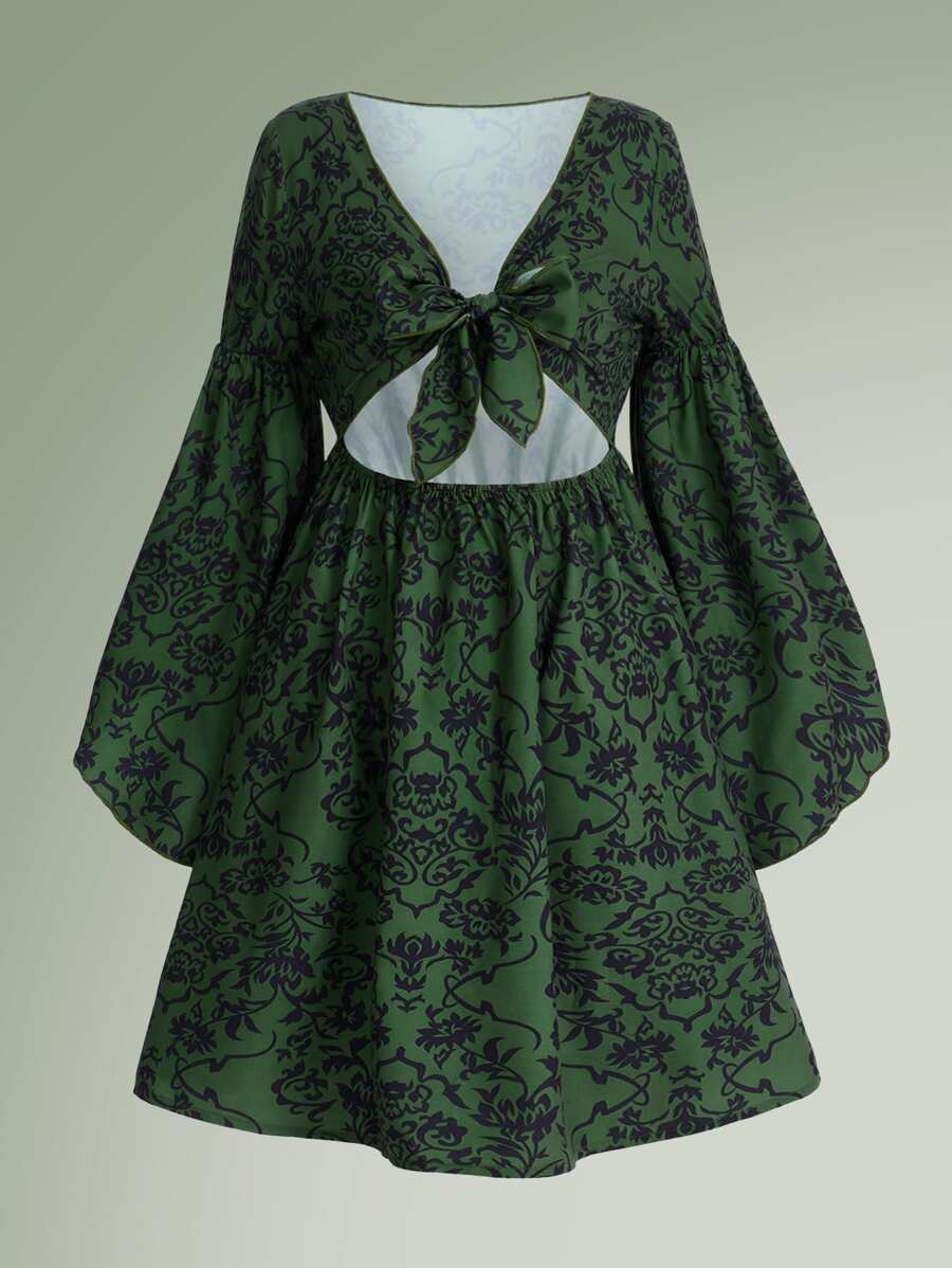 Robe à imprimé floral à nœud découpé