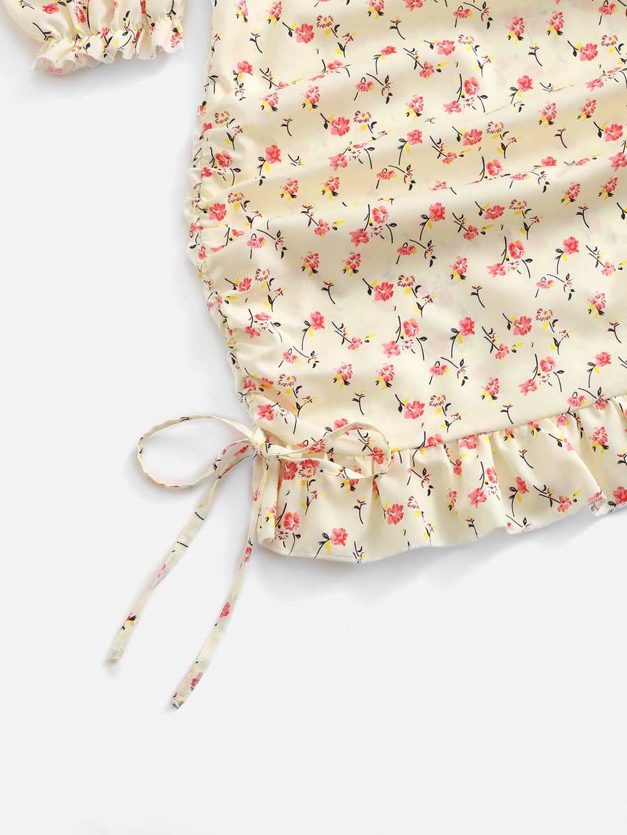 Robe à imprimé floral à épaule nouée à volants