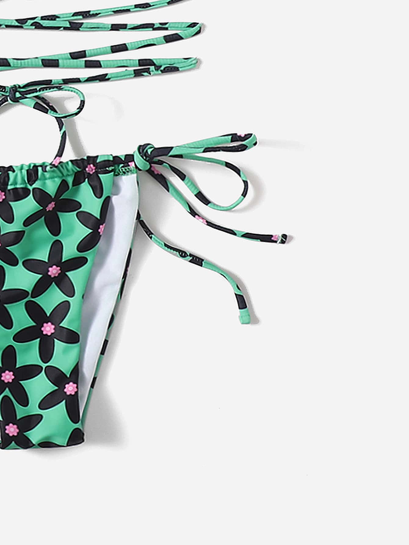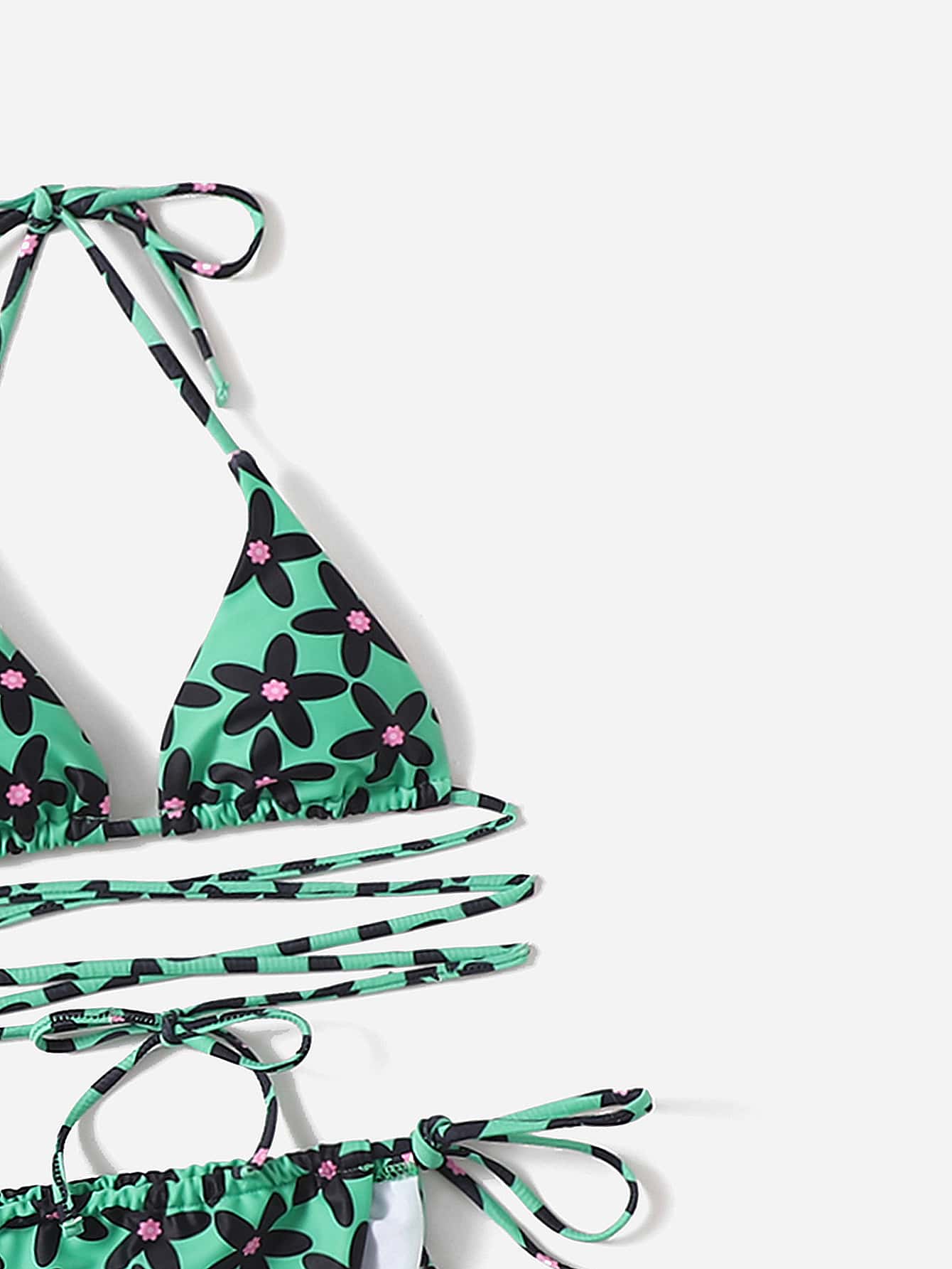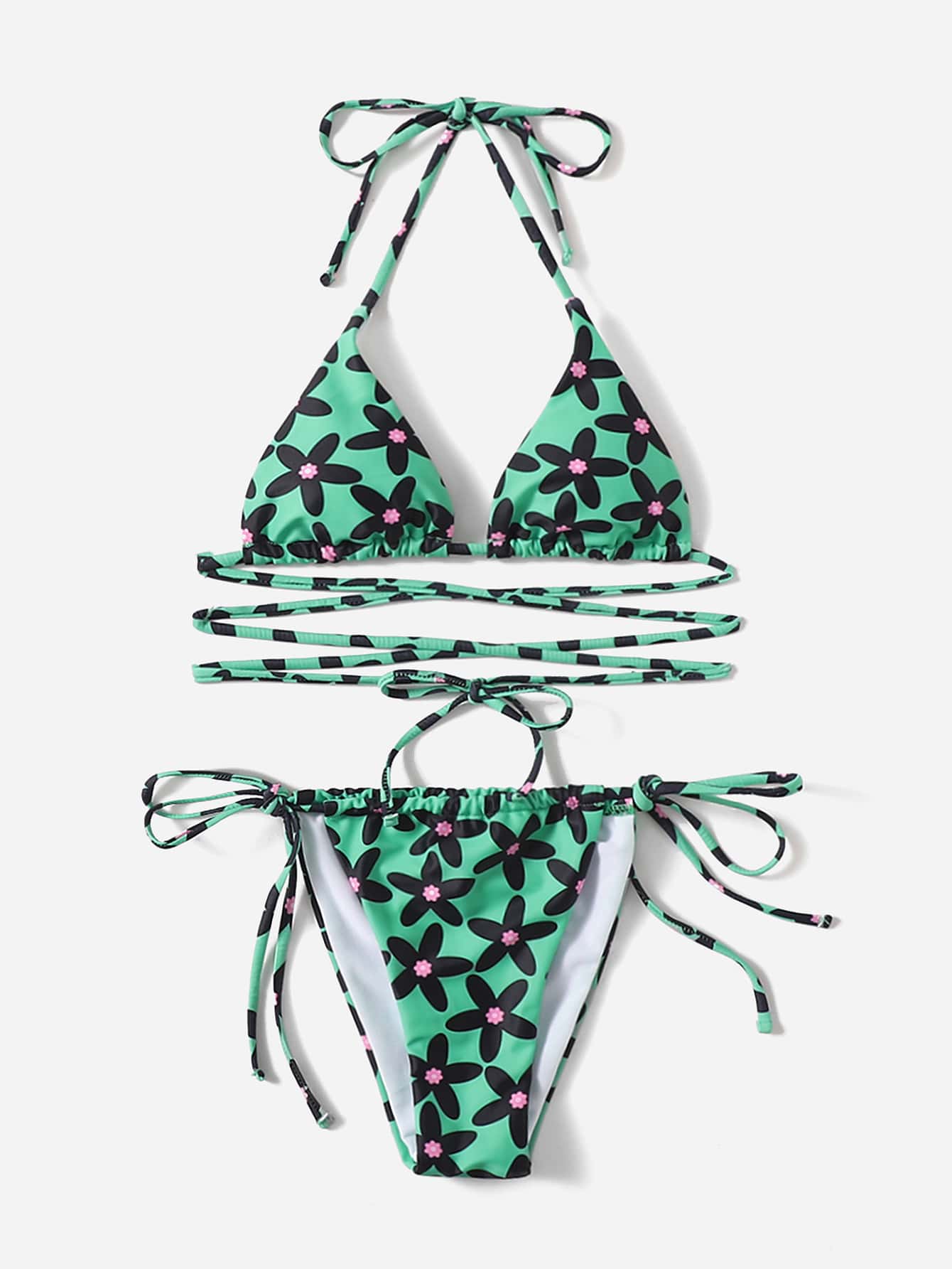 Bikini Triangle Imprimé Floral Noué Sur Le Côté