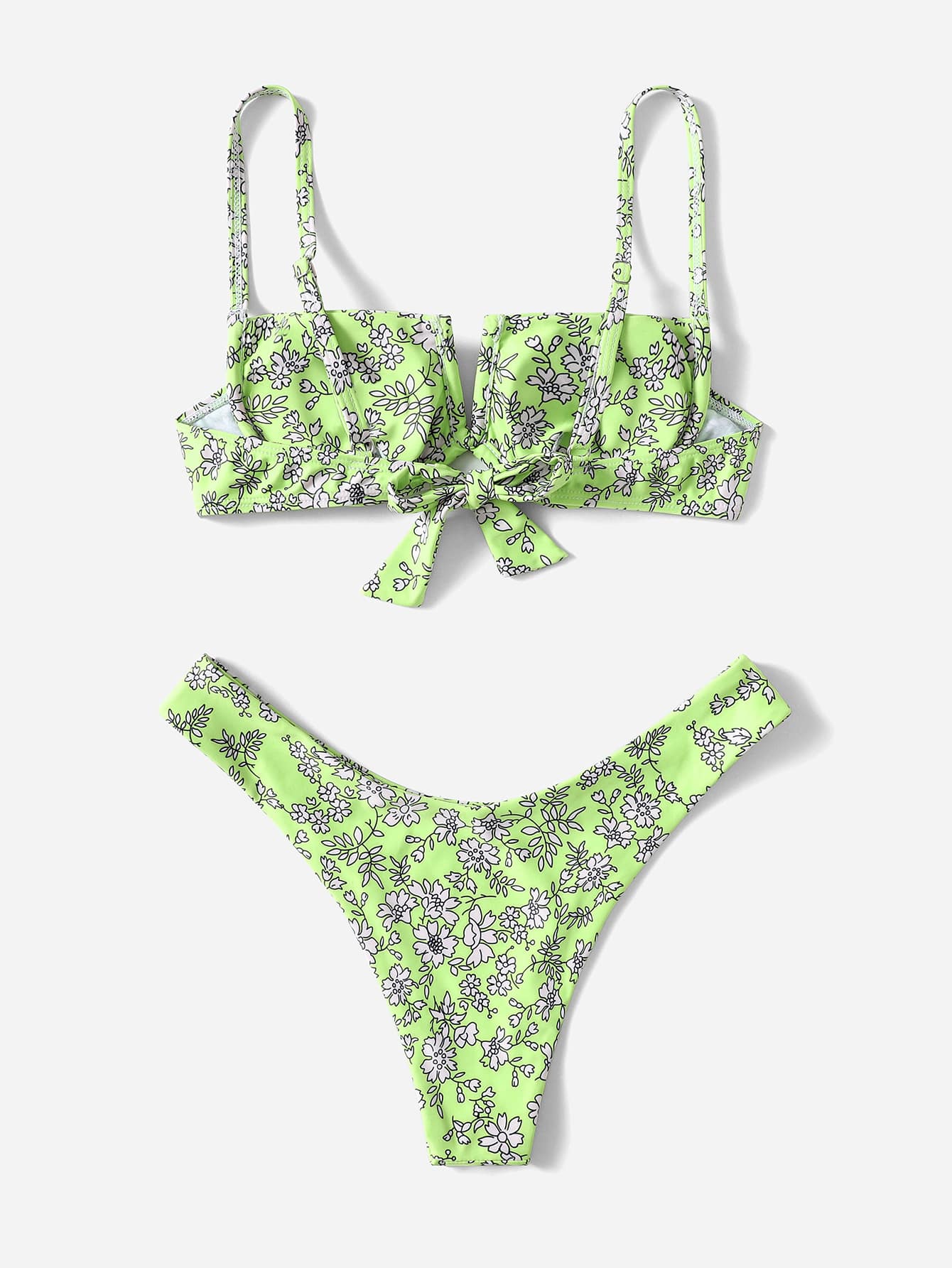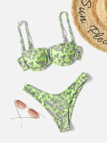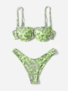 Bikini Coupe Haute À Armatures En V À Imprimé Floral