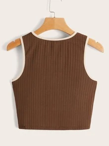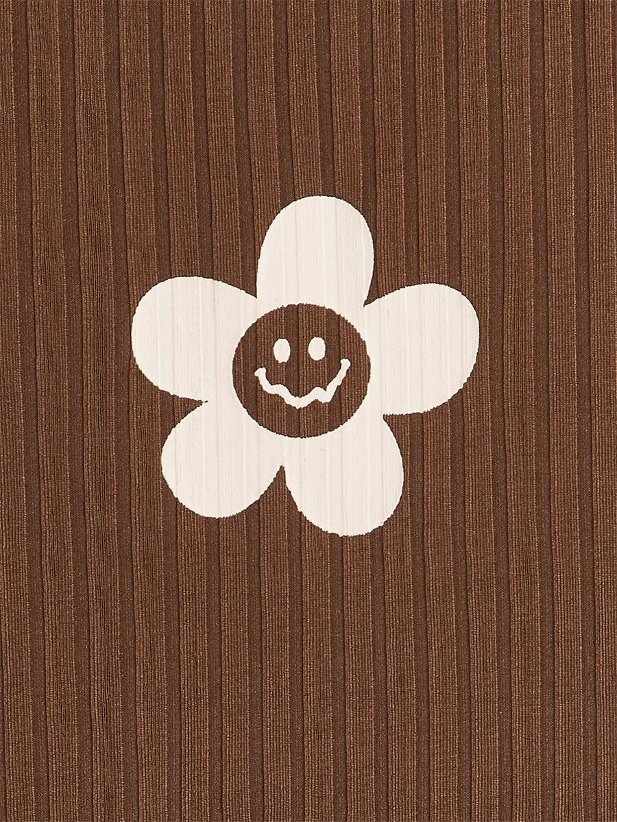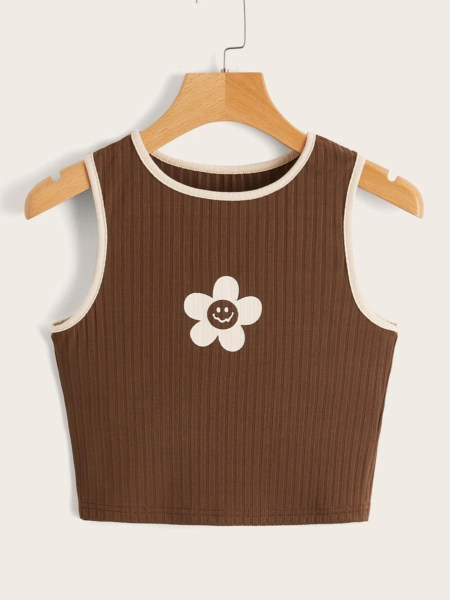 Top sans manches fleuri côtelé
