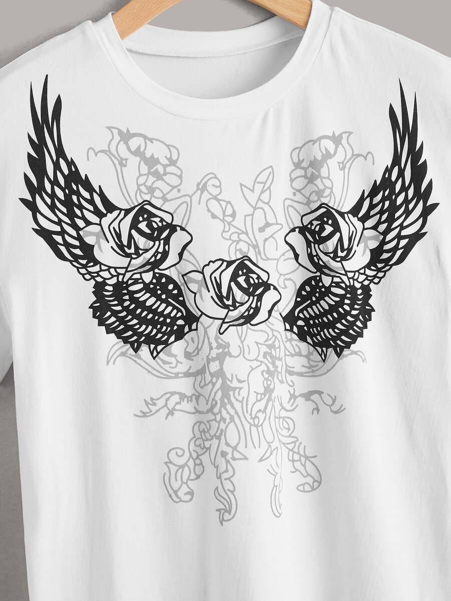 T-shirt fleuri & à motif aile