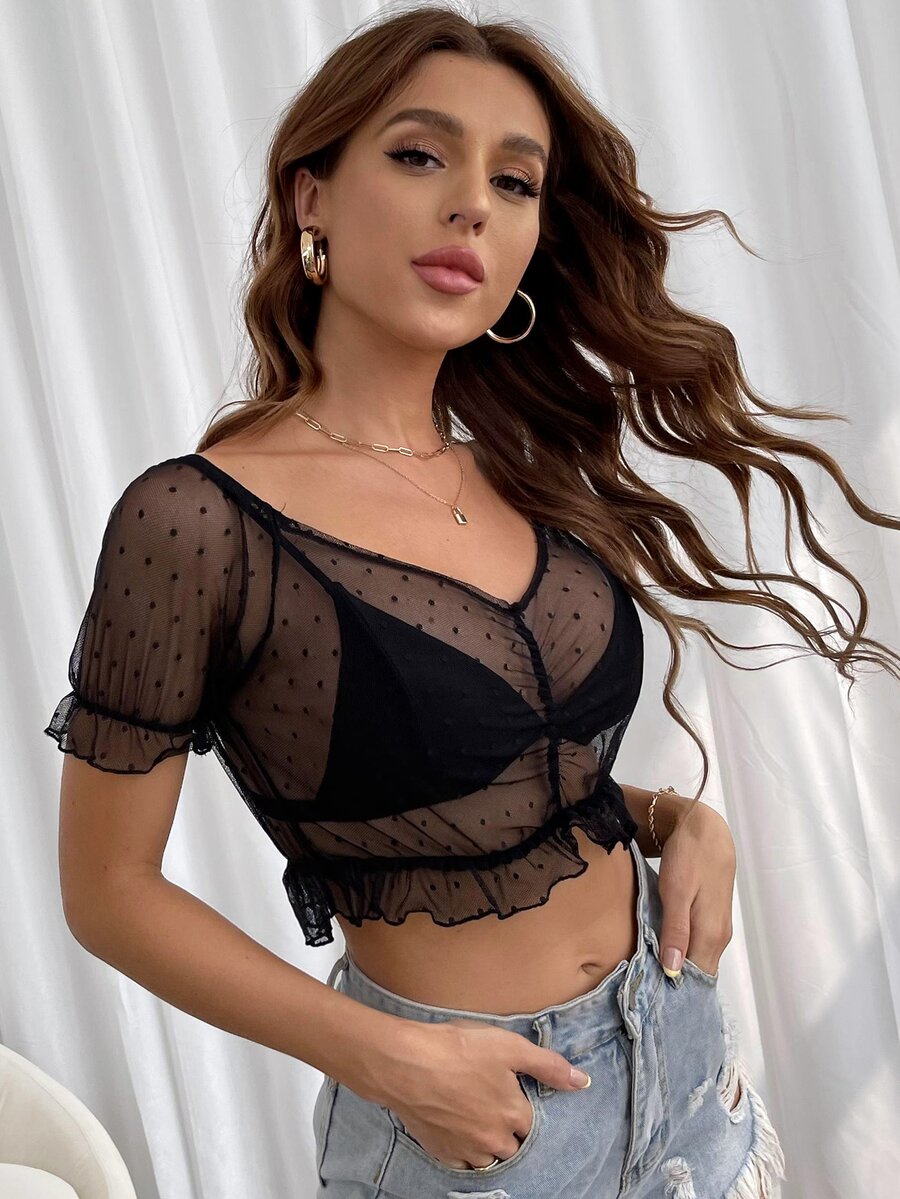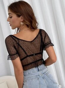 Top manches évasées en tulle transparent (sans soutien-gorge)