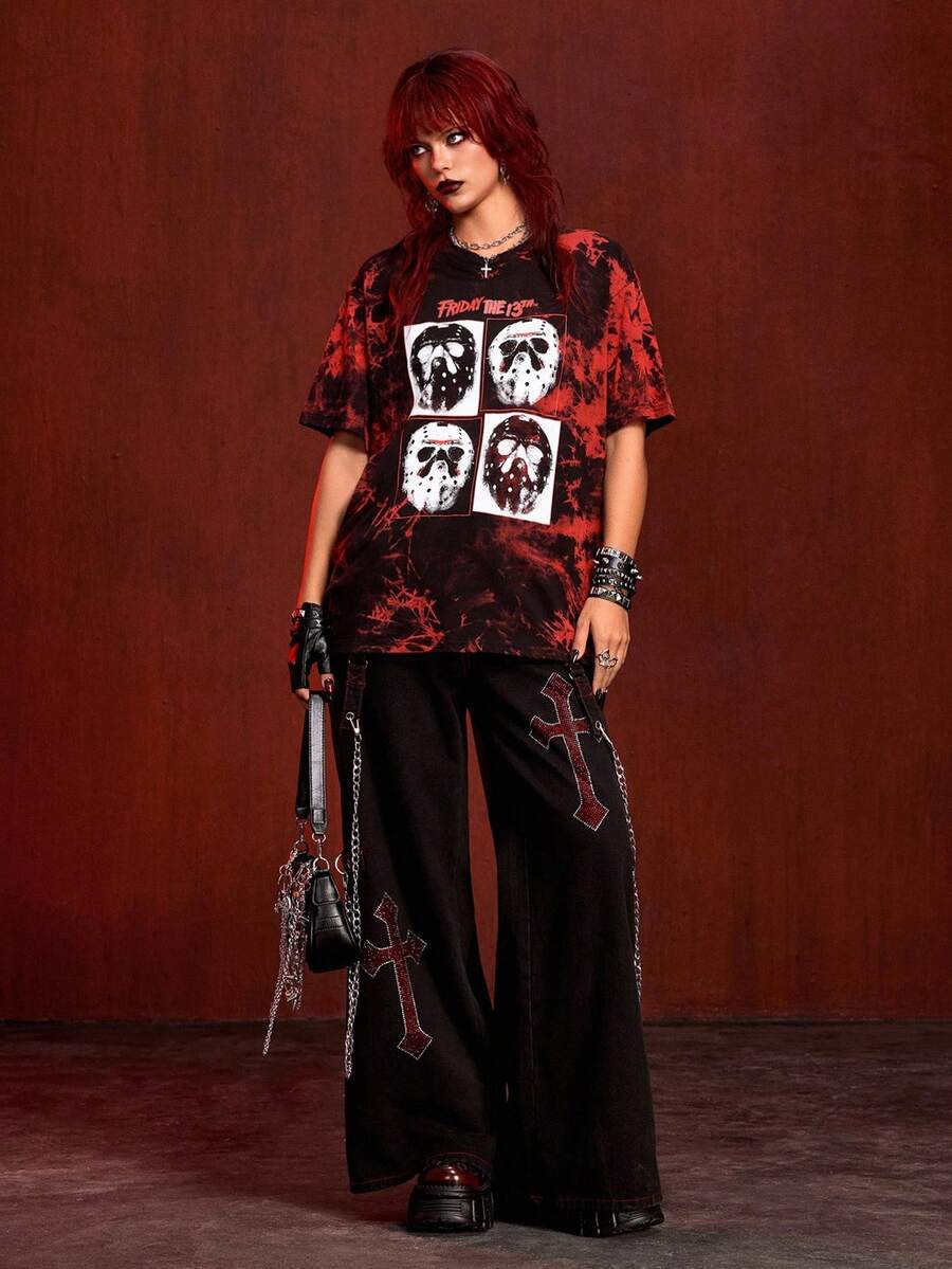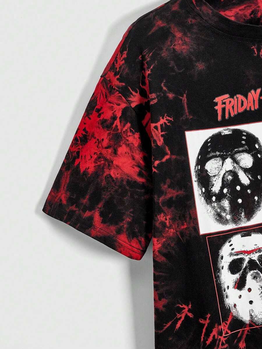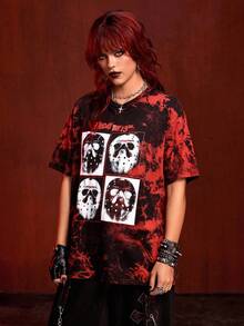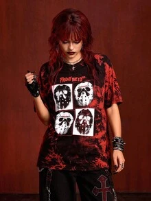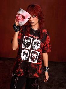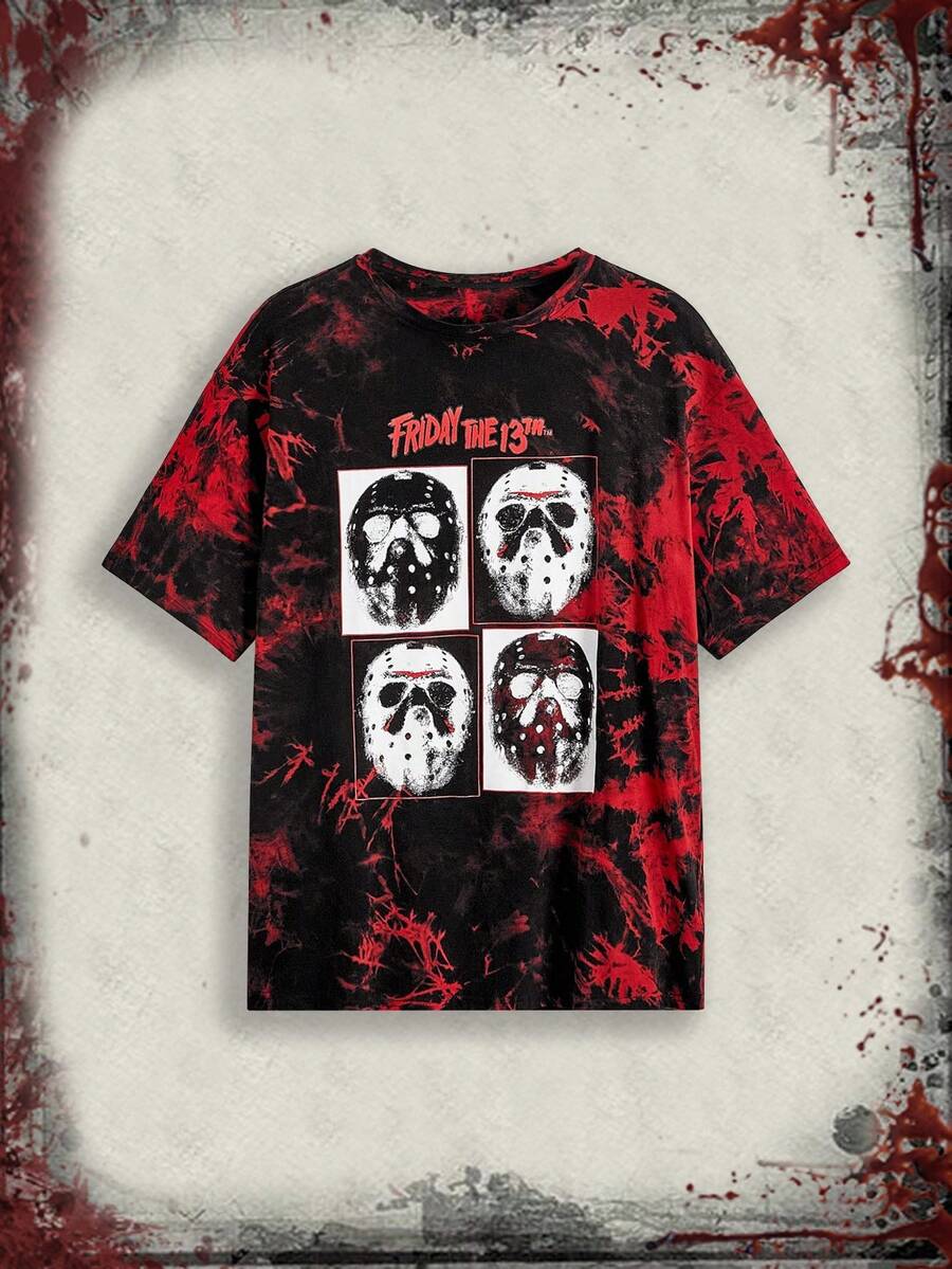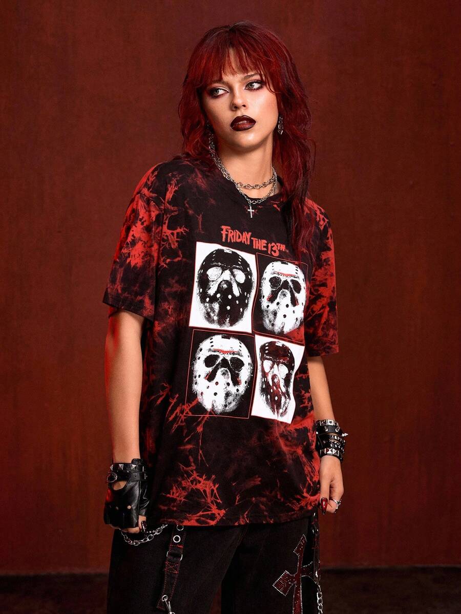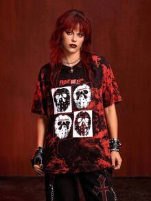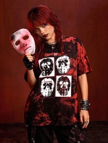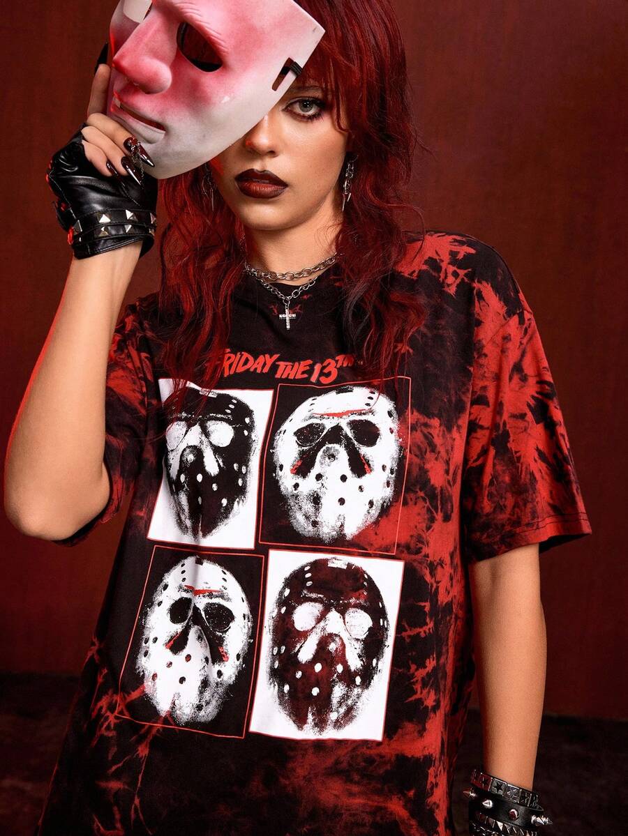 Friday the 13th X ROMWE T-shirt à manches courtes col rond avec graphique de lettre et masque pour femmes