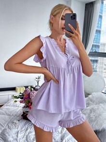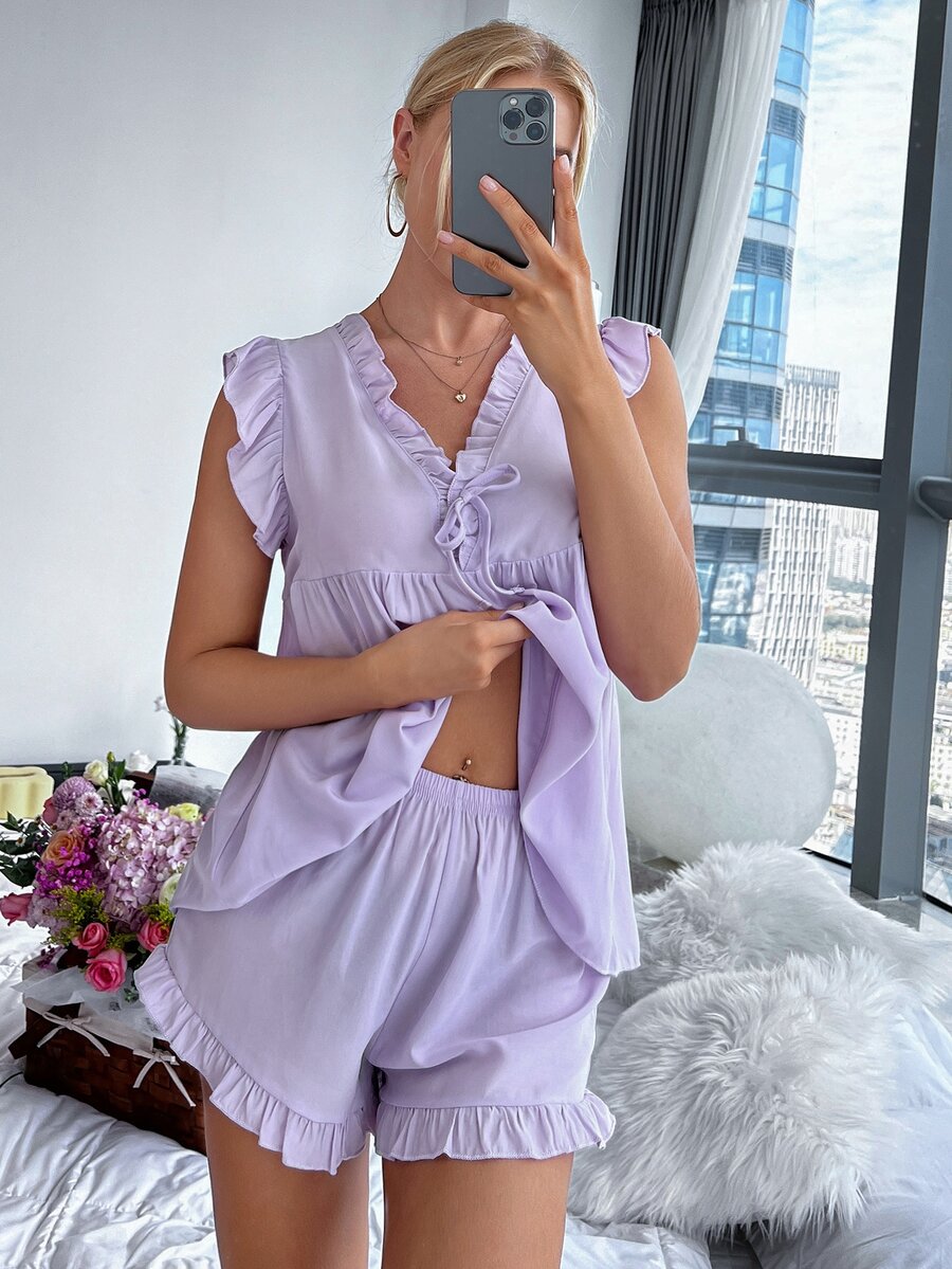 Ensemble de pyjama à fronces à nœud à volants