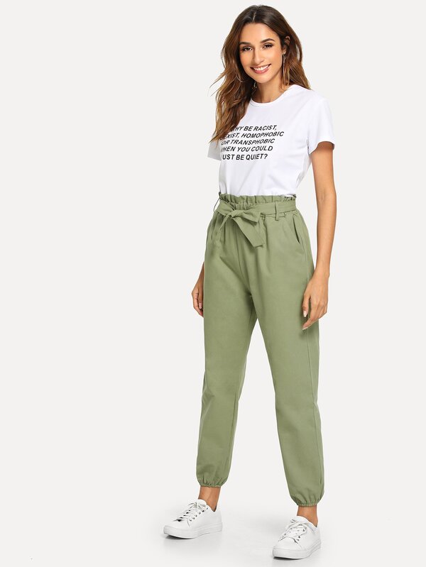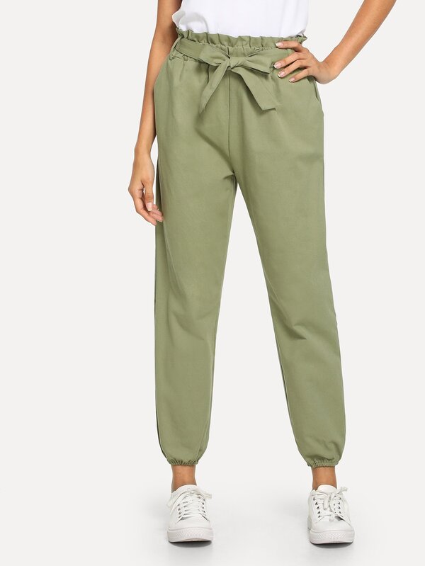 Pantalon unicolore avec ceinture et des plis