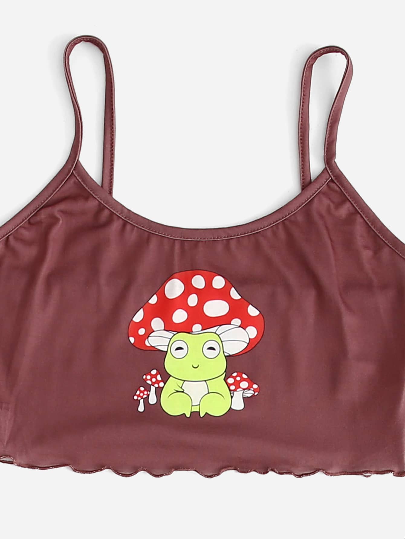 Ensemble de pyjama à imprimé champignon et grenouille à ourlet ondulé
