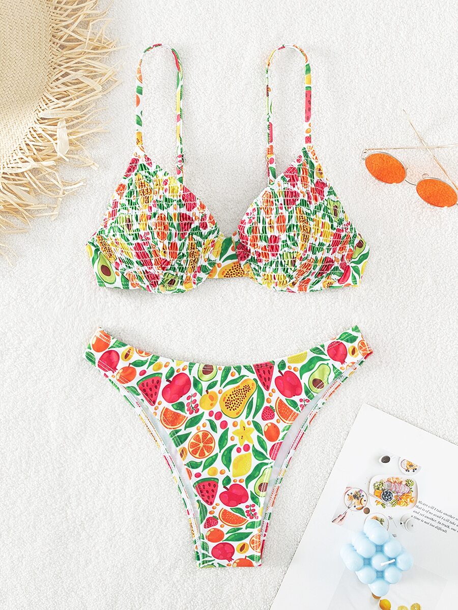 Ensemble bikini d'été pour plage avec armatures et imprimé de fruits