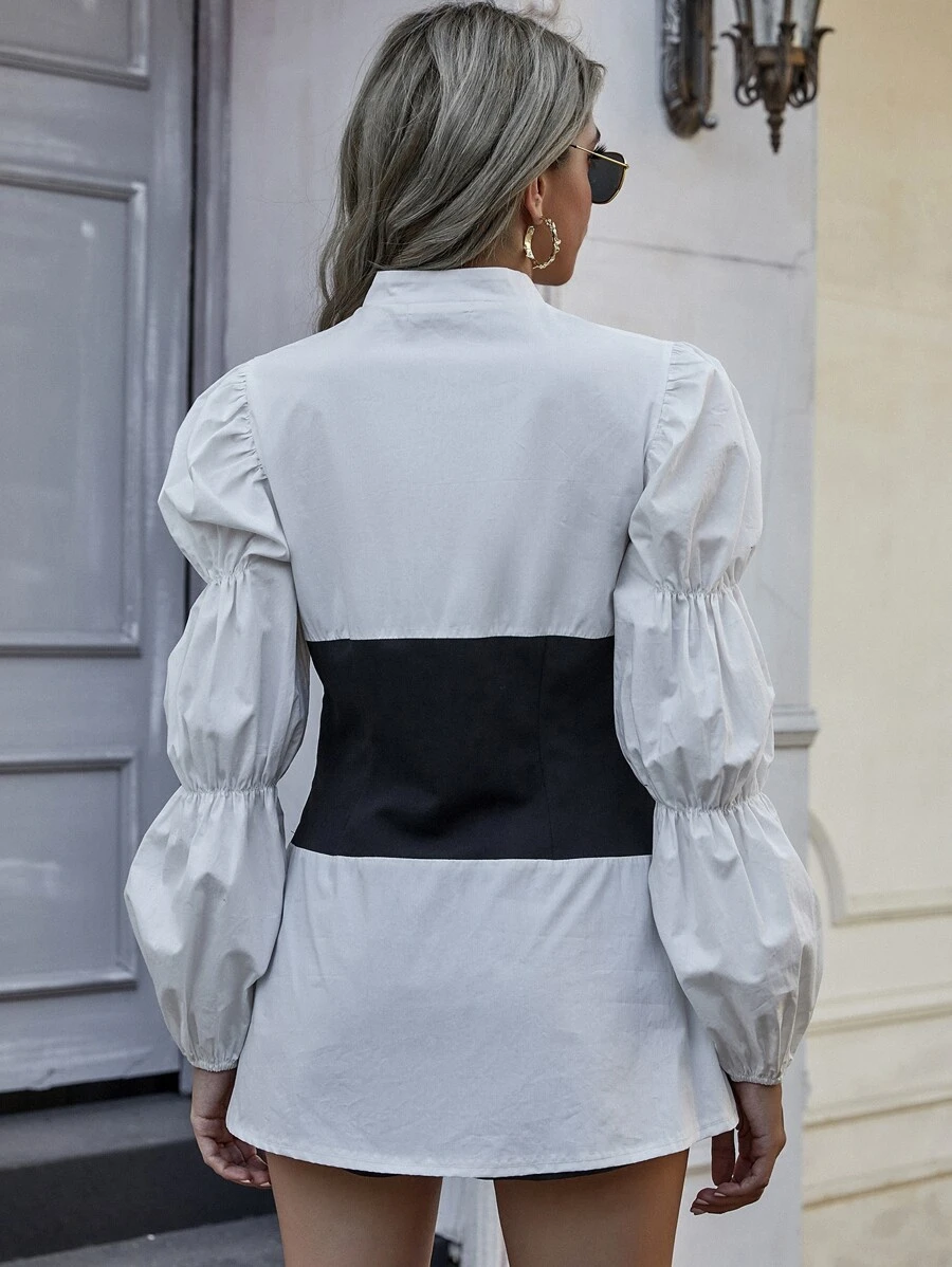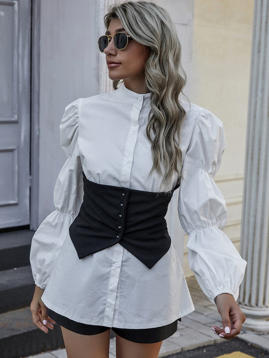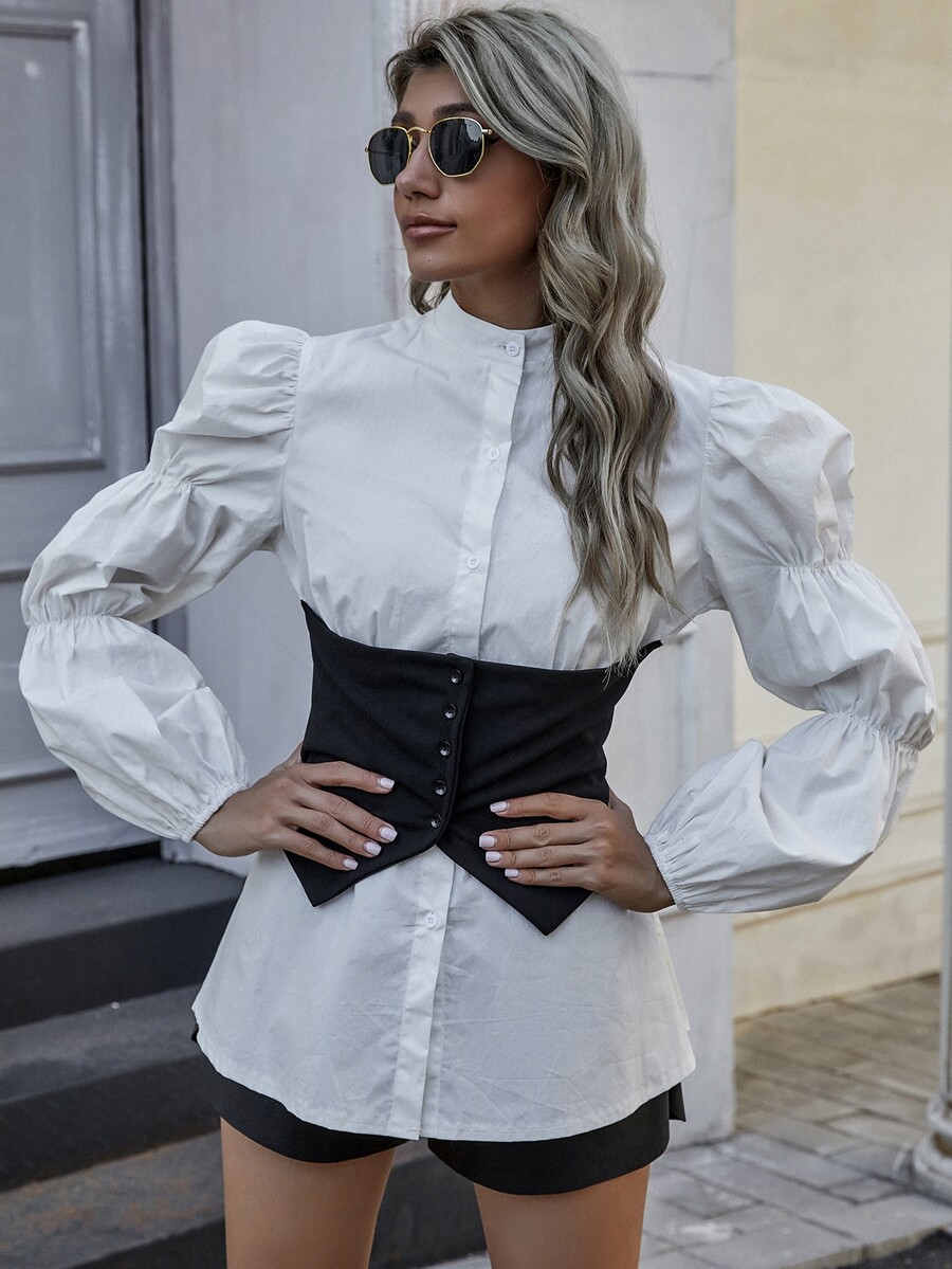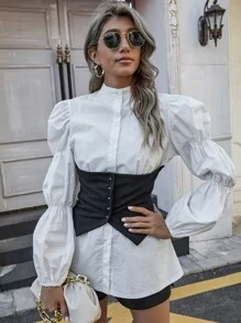 Blouse corset avec manches froncées et boutons