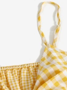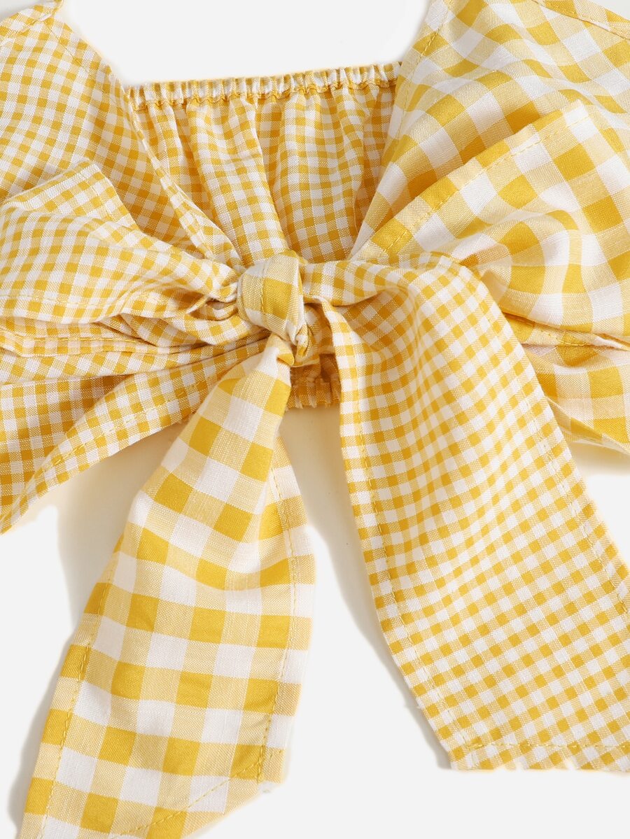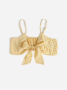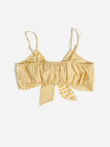 Top à fines brides court en vichy à nœud