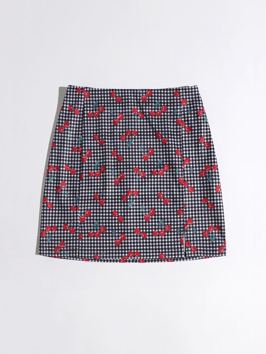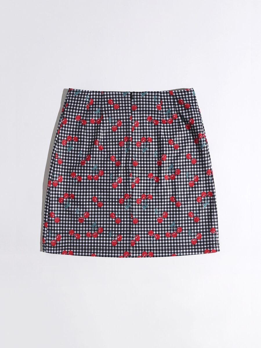 Jupe à imprimé cerise à carreaux