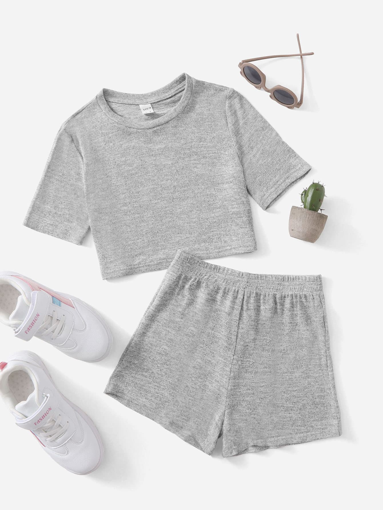 Fille Ensemble short & t-shirt chiné