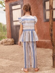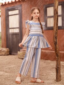Fille Combinaison péplum à rayures à blocs de couleurs à volants