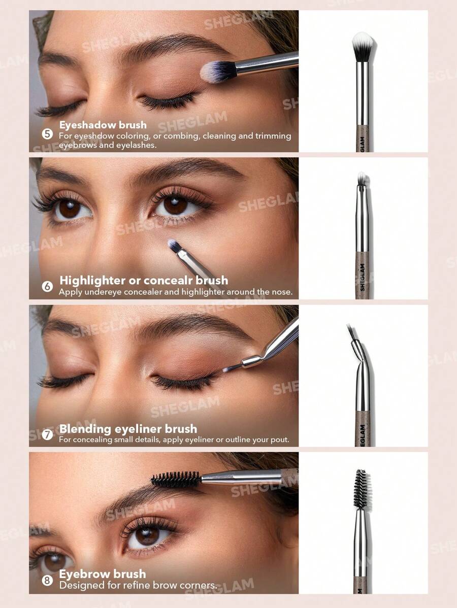 Ensemble De Pinceaux De Maquillage Glam Fam, 8 PièCes, Pinceaux SynthéTiques Pour Sourcils, Fard à PaupièRes, Contour, Surligneur, MéLange, Anti-Cernes, Eye-Liner, Pinceaux De Maquillage Pour Les Yeux Marque Beauté Visage Maquillage CosméTique Pour Femmes Filles Parfait Pour Hiver IdéAl Pour Y2K ÉLéGant Mode Adapté Pour Anniversaire Xmas Cadeau FêTe PrêT Meilleure Couleur