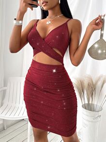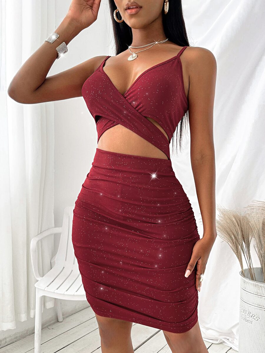 Robe moulante scintillant croisé découpe