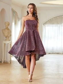 Robe de bal bustier asymétrique brillante