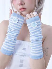 Goth 1 paire de manchons pour les bras de style minimaliste en tricot, manches demi-bras noires unies inspirées de la campagne, fines et chaudes pour le printemps/automne