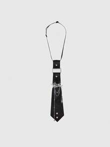 Goth 1 pièce Cravate avec décoration de chaîne à rivets et design graphique d'araignée de style punk de rue noir. Accessoire minimaliste mode unisexe convenant pour le port quotidien, les festivals de musique, l'université, les sorties, Halloween, Noël