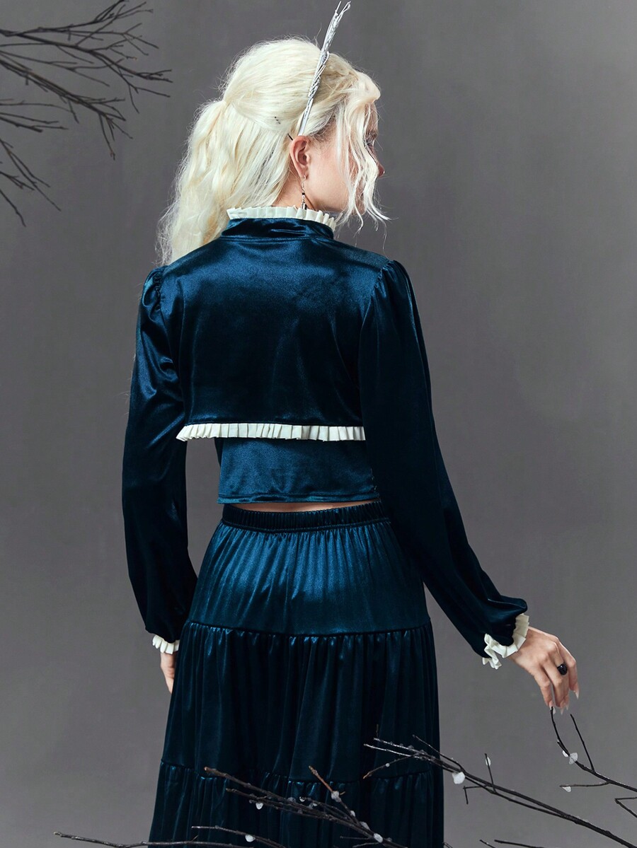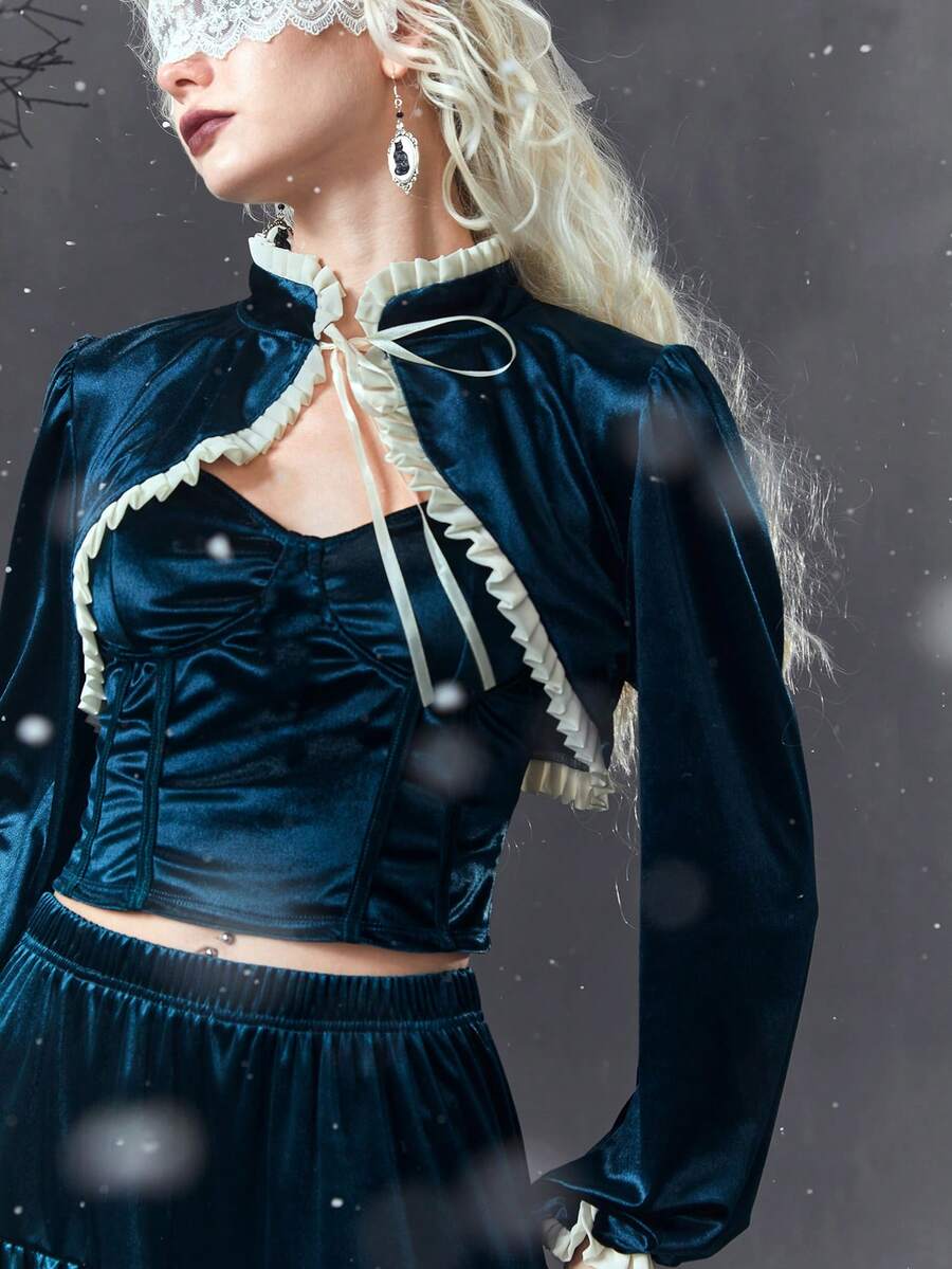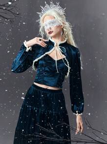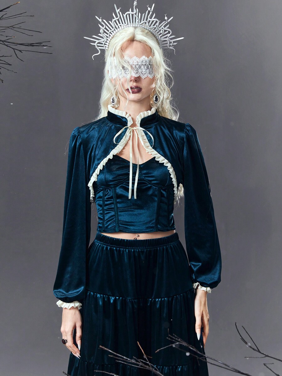 Goth 1 pièce Top Très Court En Velours Devant À Nœud