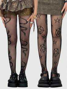 Goth 2 paires de collants résille avec motif araignée et chauve-souris, Halloween