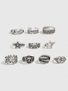 Goth 4 pièces/set Bagues en forme d'étoile spirale de style punk, set de bagues réglables pour couples