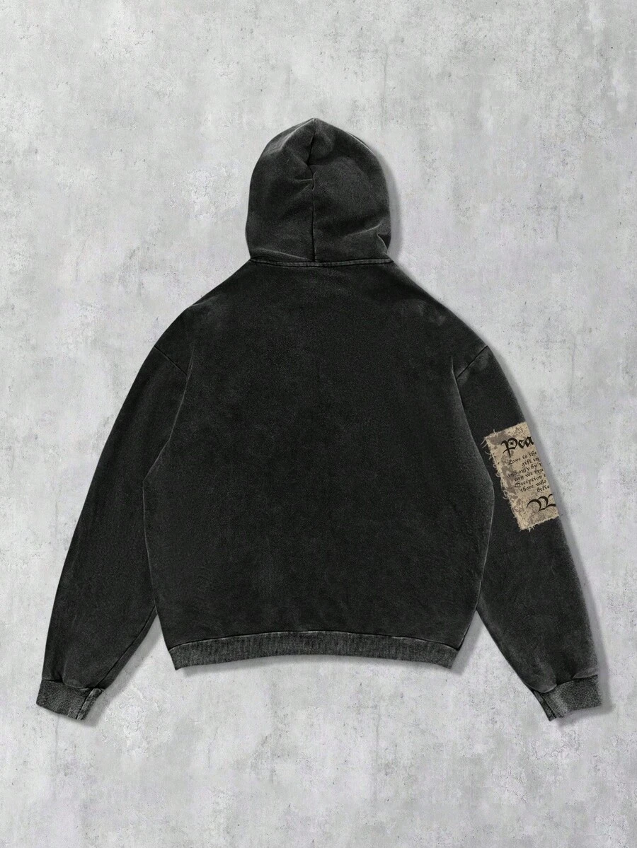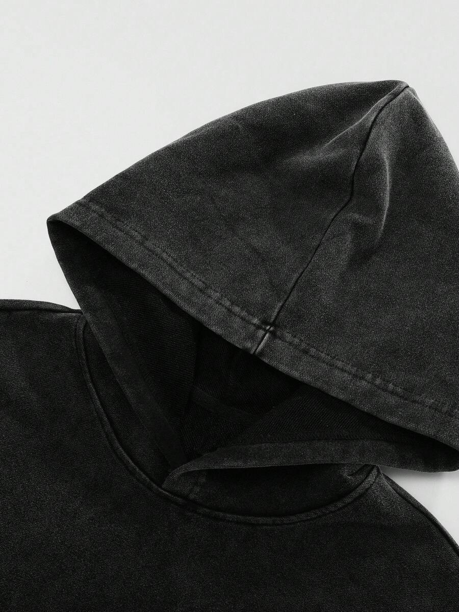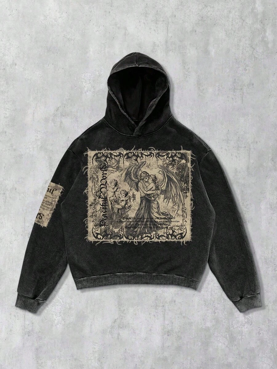 Goth Sweat-shirt à capuche sans poche pour hommes, personnage religieux lavé à l'acide noir