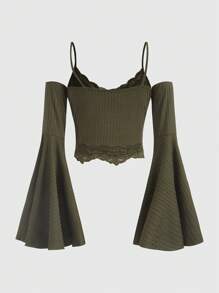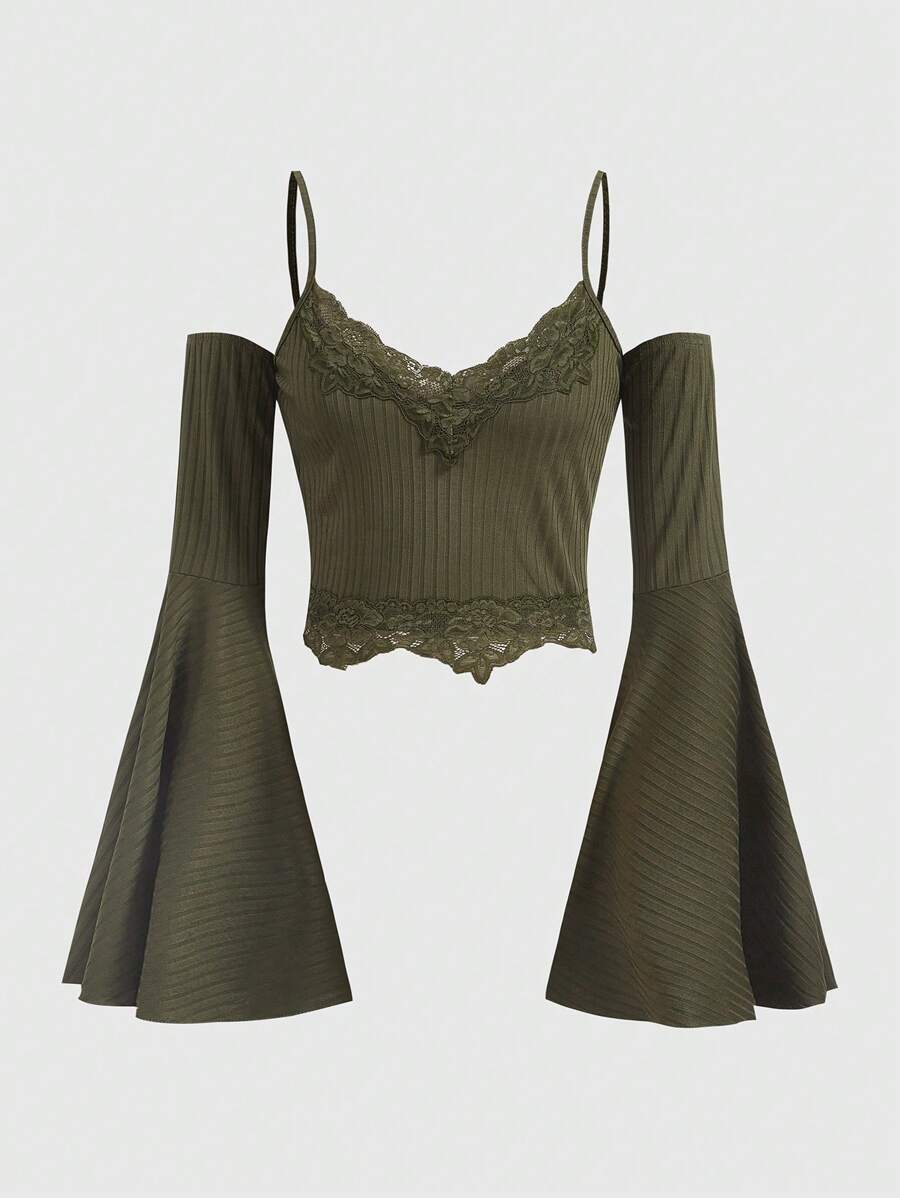 Goth Top En Dentelle À Épaules Dénudées Manches Évasées