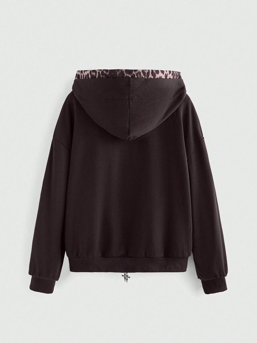 Goth Sweatshirt patchwork imprimé croix et léopard
