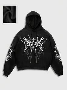 Goth sweat-shirt à capuche noir décontracté et pour hommes, sans poches, pour l'hiver