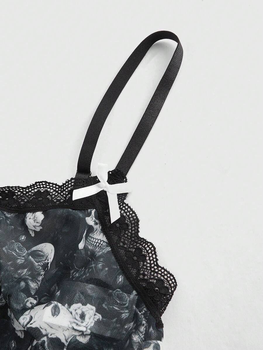 Ensemble de lingerie comprenant un débardeur et un string imprimé crâne rose sombre gothique