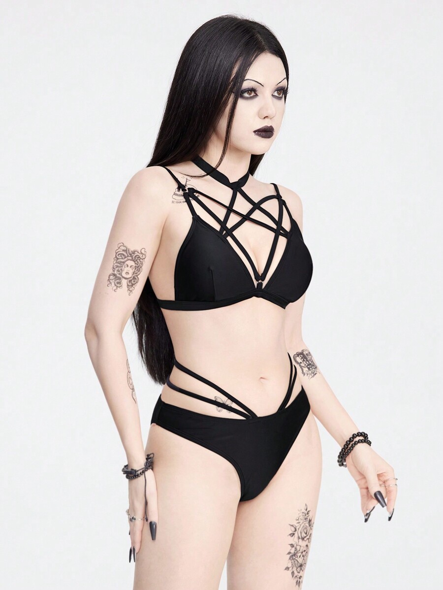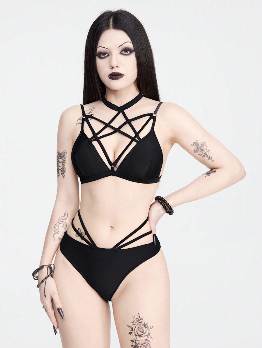 Goth Style gothique Maillot de bain à design d'étoile à 5 branches pour femmes, Ensemble de bikini pour les vacances d'été, Halloween