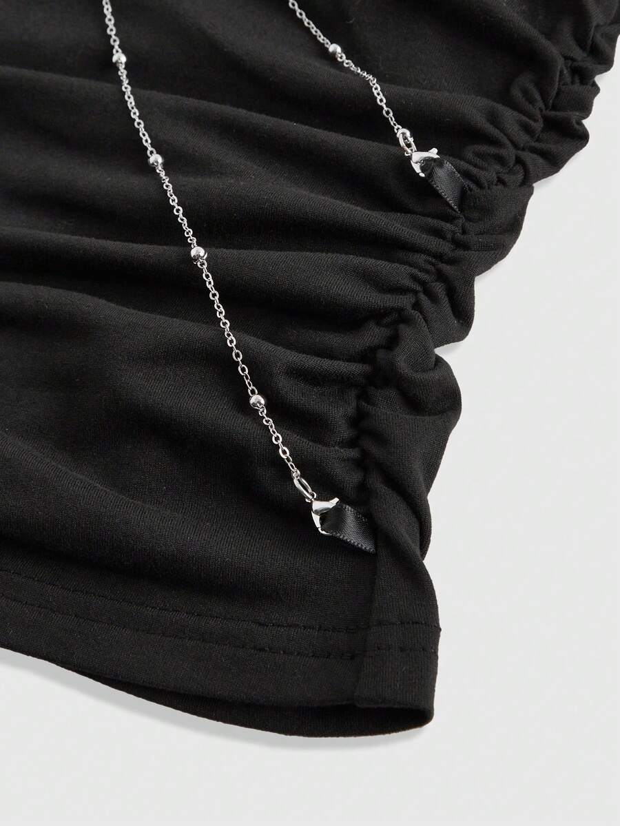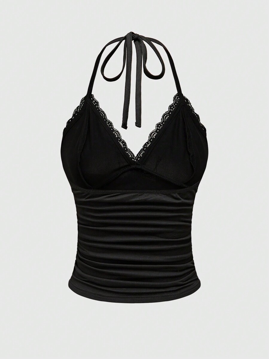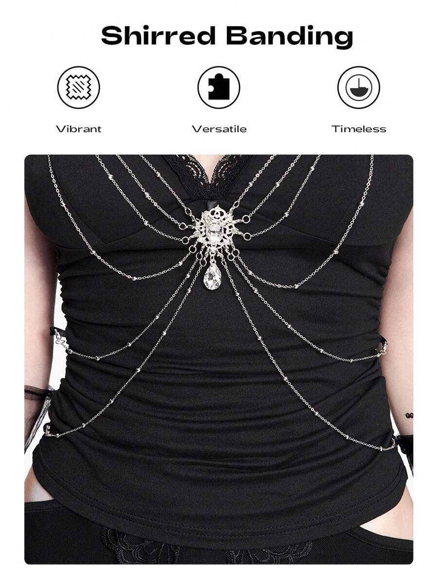 Goth Débardeur style gothique pour femmes avec encolure en V, dentelle diamant et épissure ras-du-cou, Noël