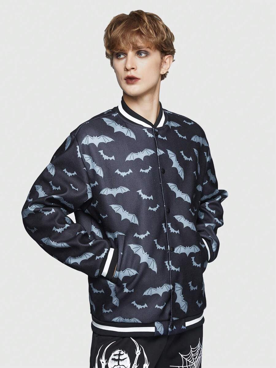 Goth Homme Bomber Partout Imprimé Chauve-Souris À Ourlet À Rayures