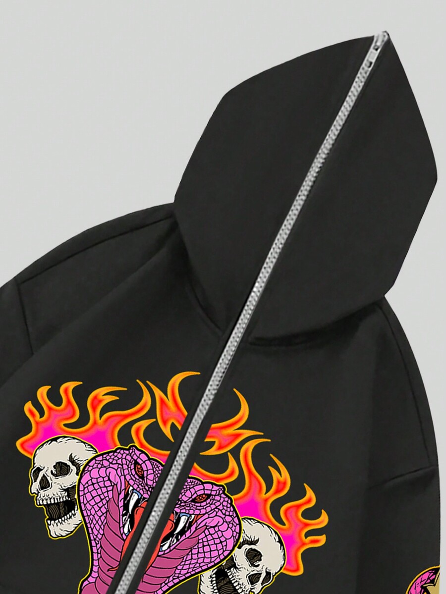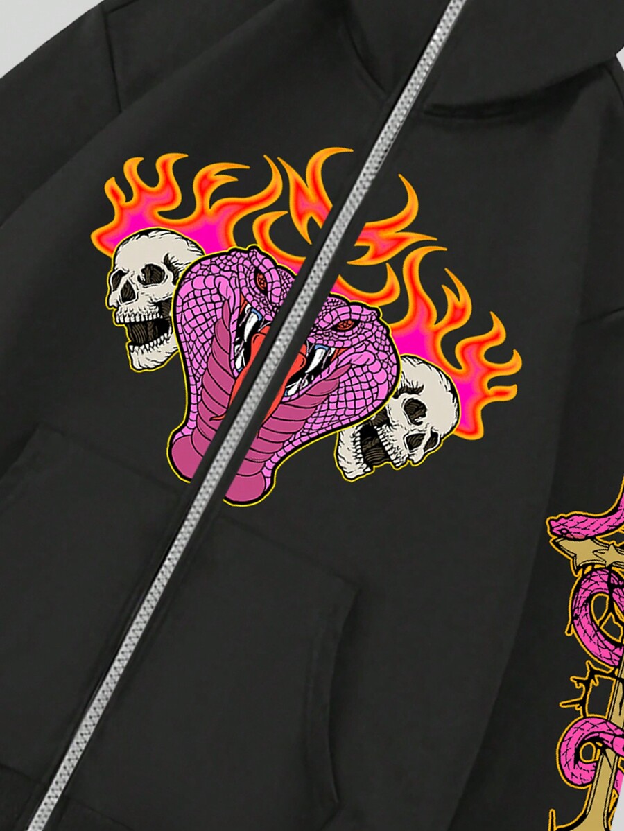 Goth Homme Sweat-Shirt À Capuche Zippé Tête De Mort & Imprimé Serpent