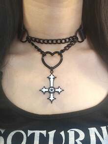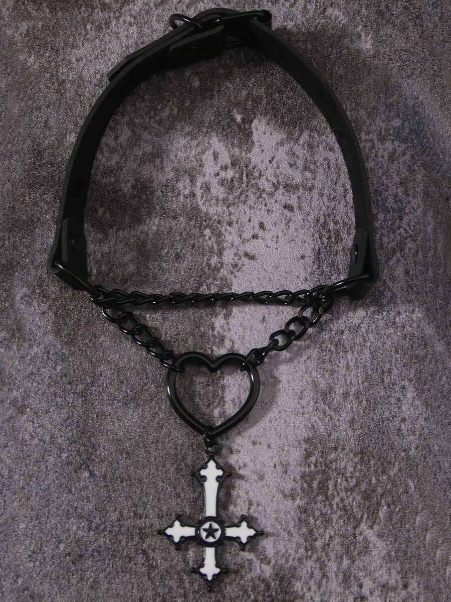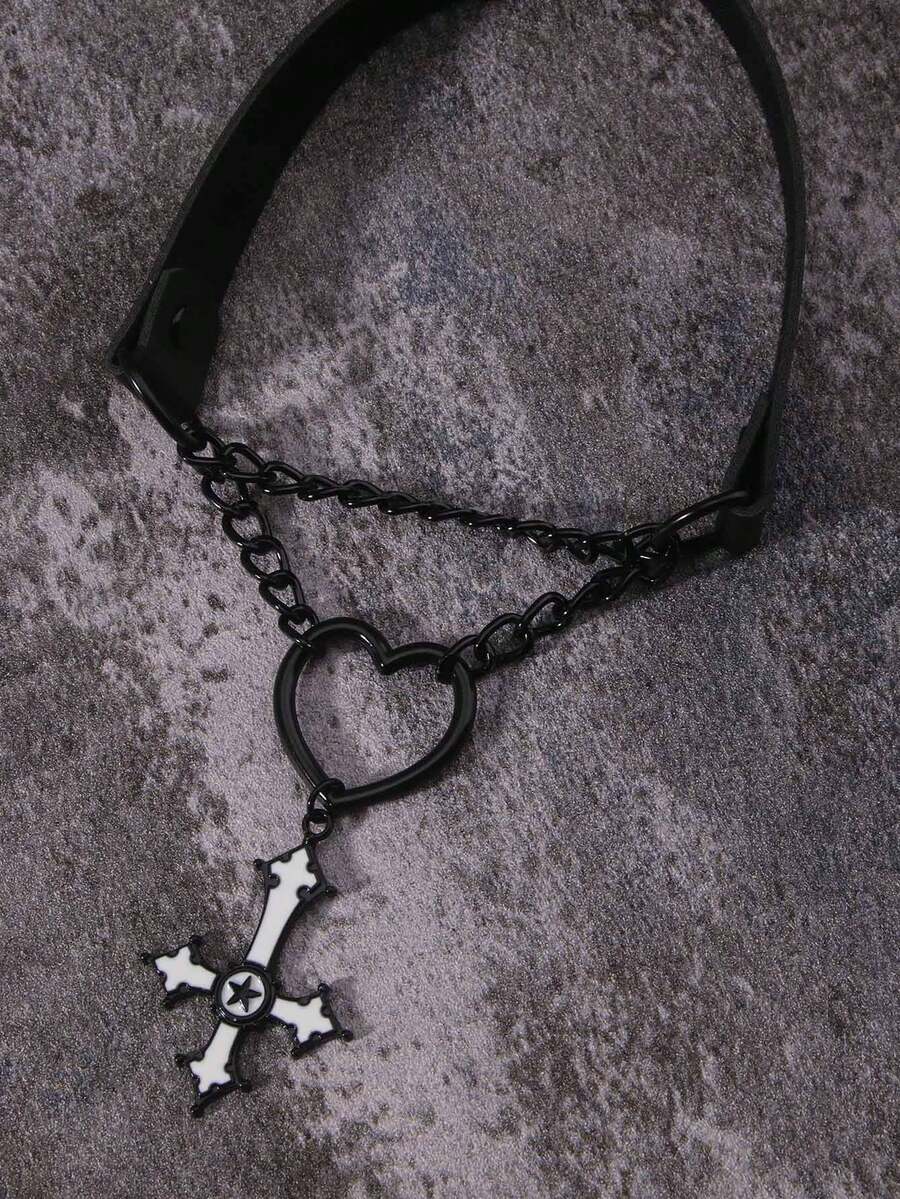 Goth Ras-du-cou Cœur & À Détail Croix