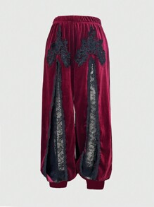 Goth Pantalon lanterne mode hippie en patchwork de dentelle bicolore