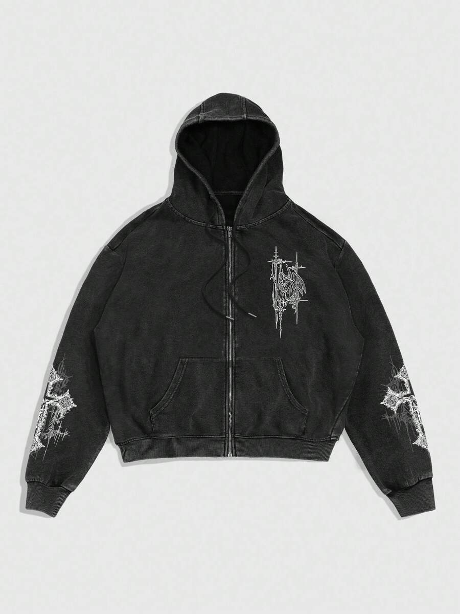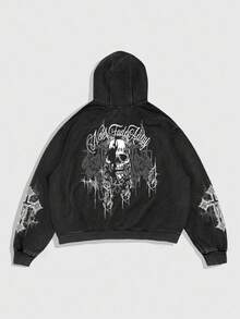 Goth Sweat-shirt à capuche zippé à manches longues avec motif tête de mort et flocons de neige