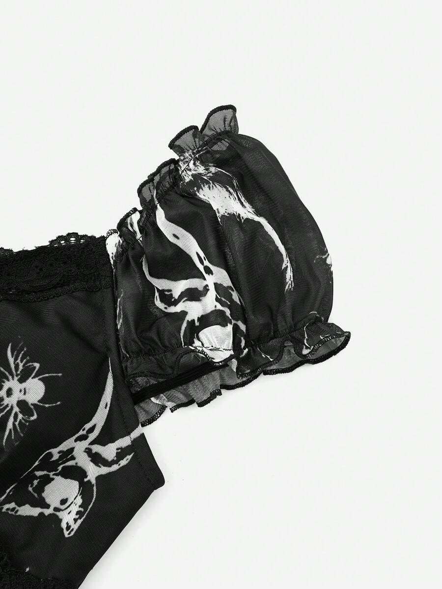 Goth Robe Insectes Imprimé À Cordon À Ruché