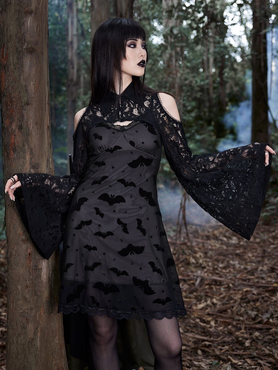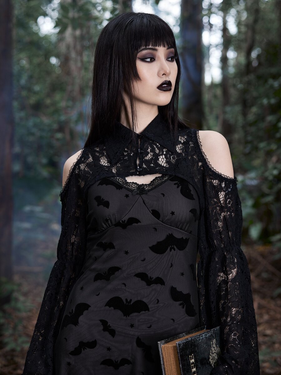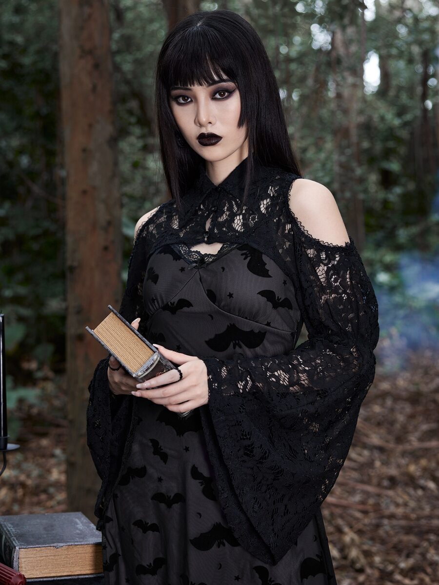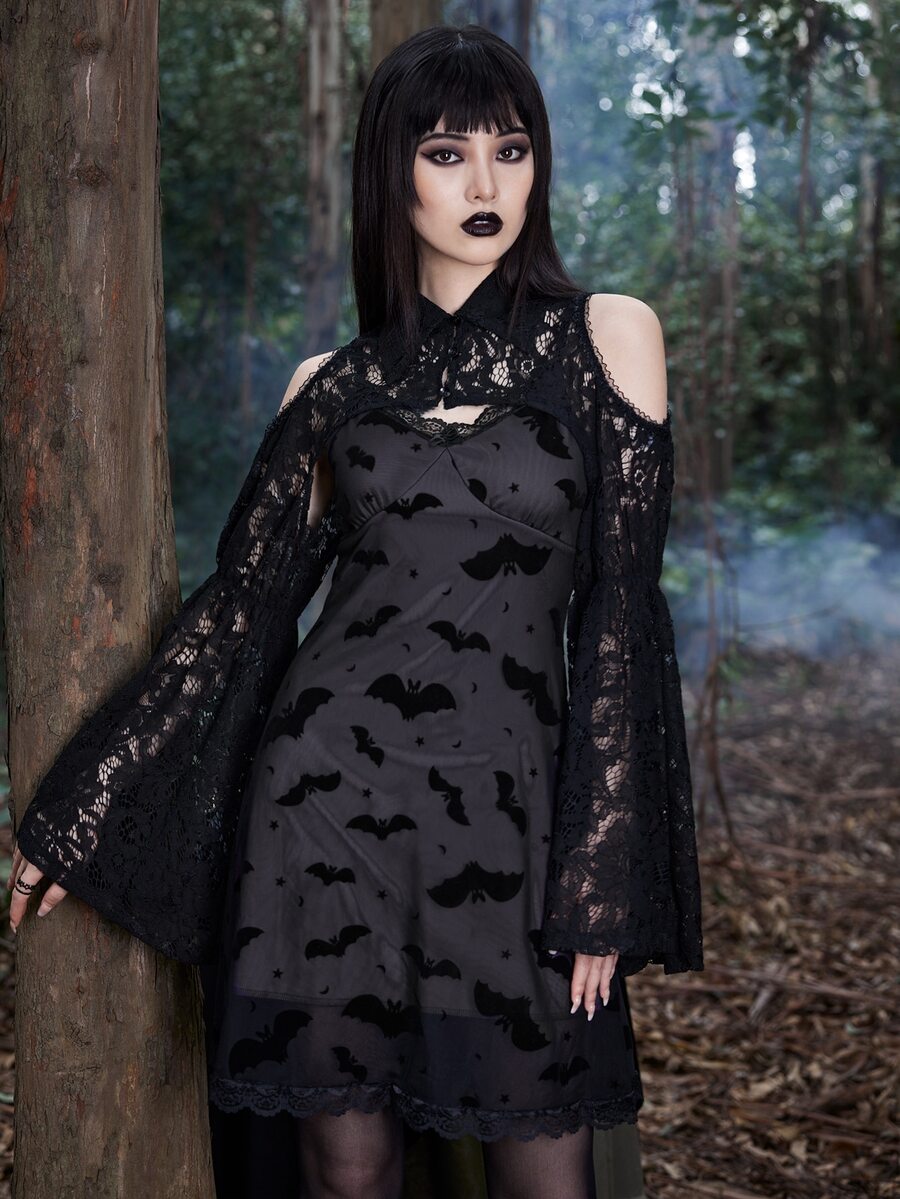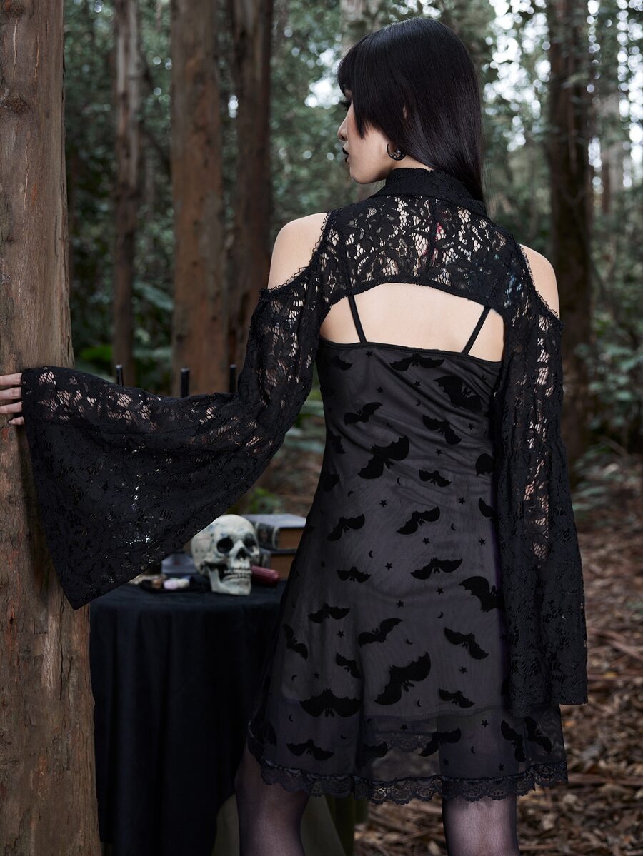 Goth Top très court en dentelle à épaules dénudées