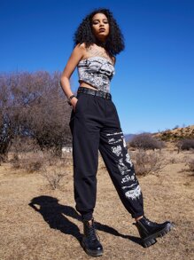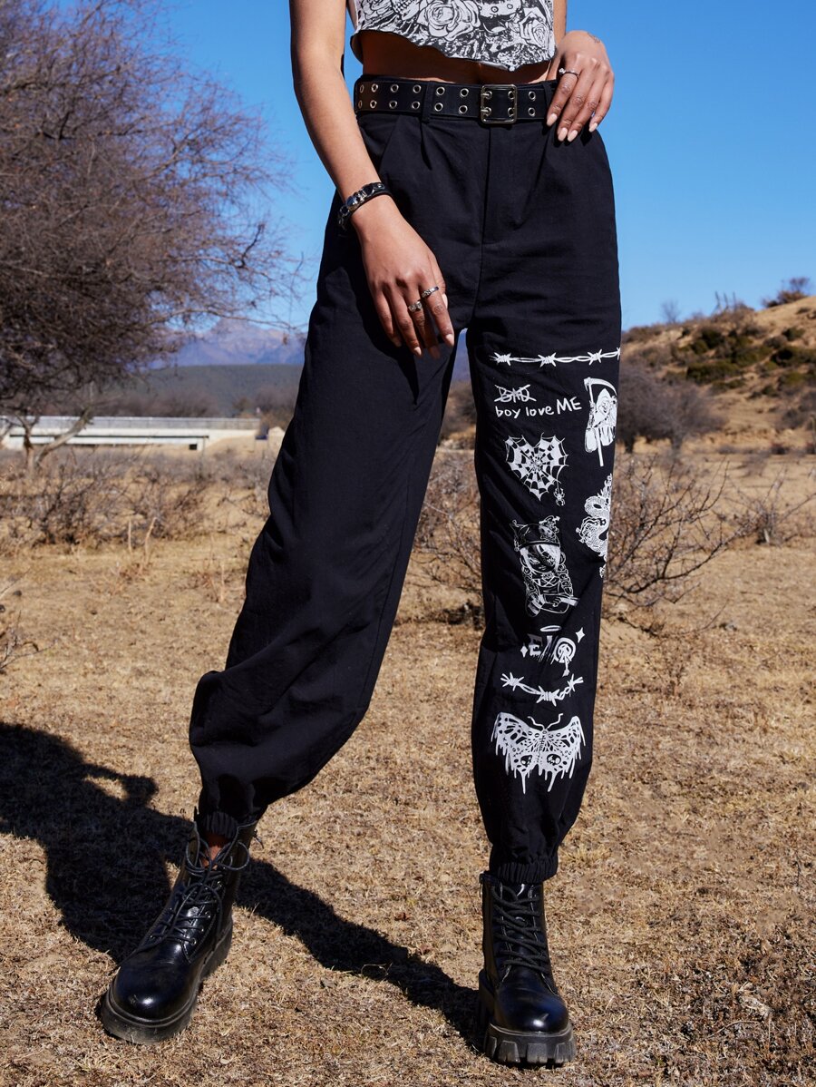 Goth Pantalon lettre papillon