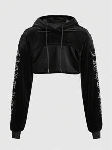 Goth Sweat À Capuche Court Imprimé Pour Femme