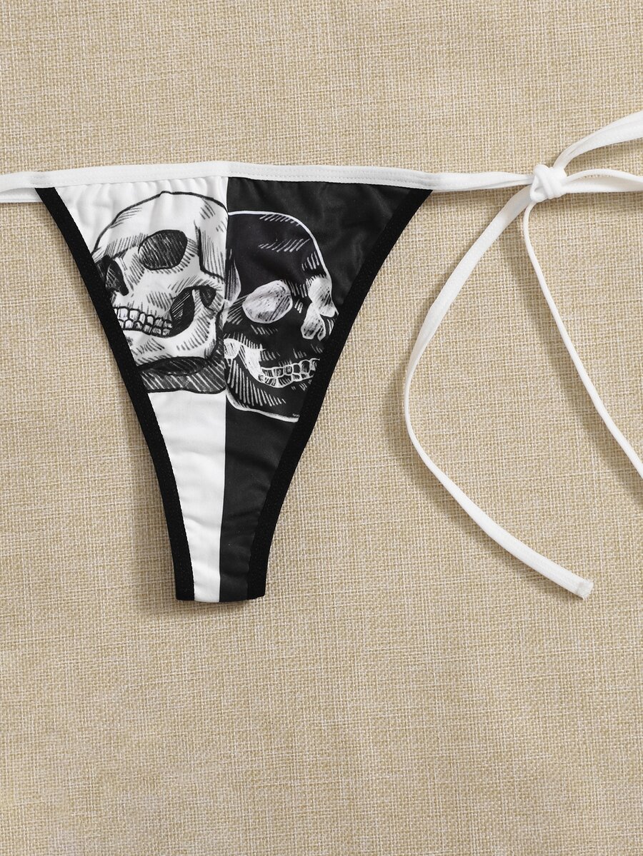 Goth Ensemble de lingerie lettre à motif tête de mort à blocs de couleurs ras-du-cou à nœud