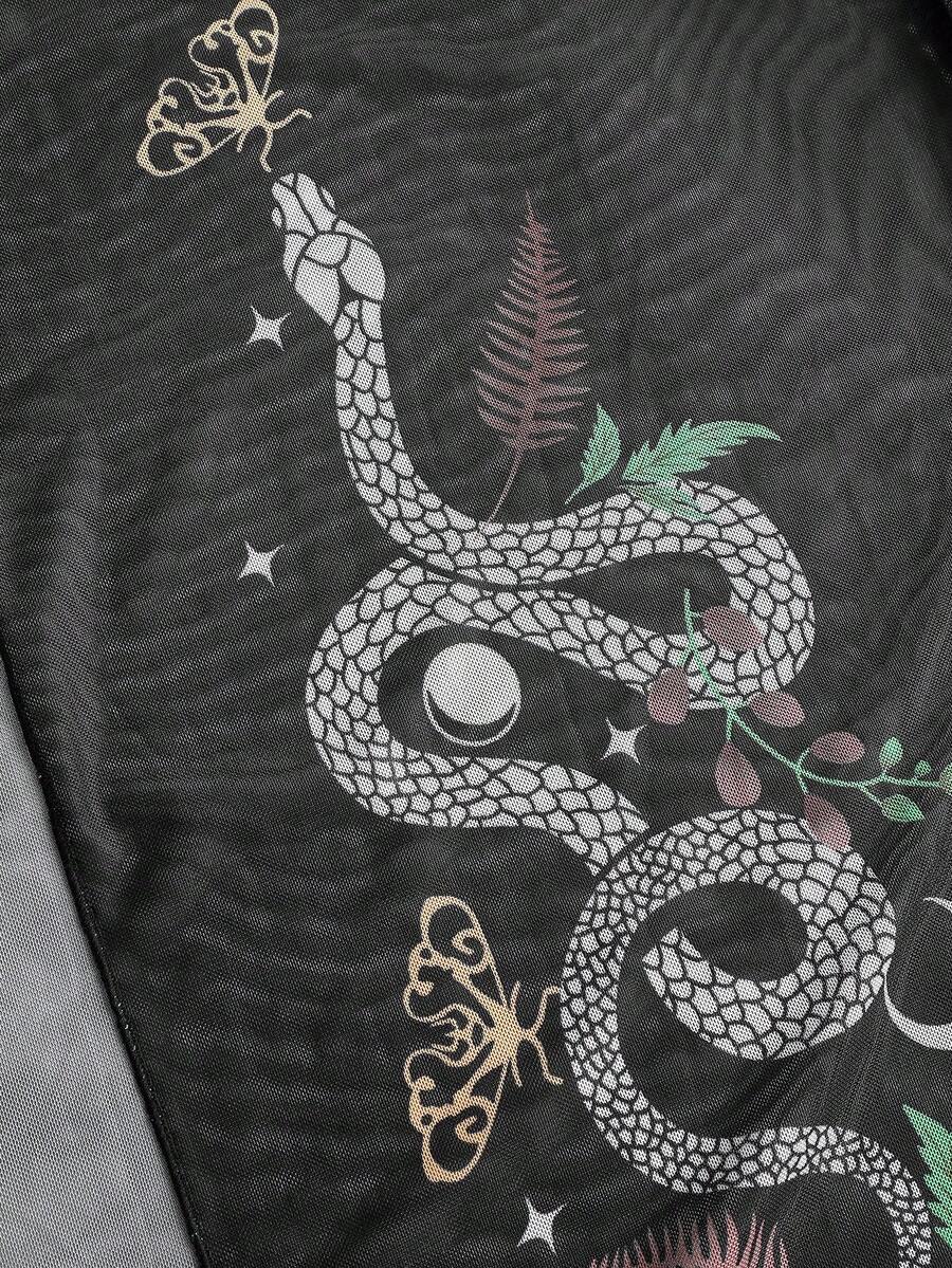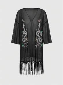 Goth Cardigan transparent à franges avec imprimé de serpent gothique et de croissant de lune, pour femmes