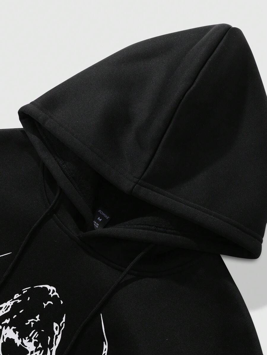 Goth sweat-shirt à capuche imprimé pour homme, noir