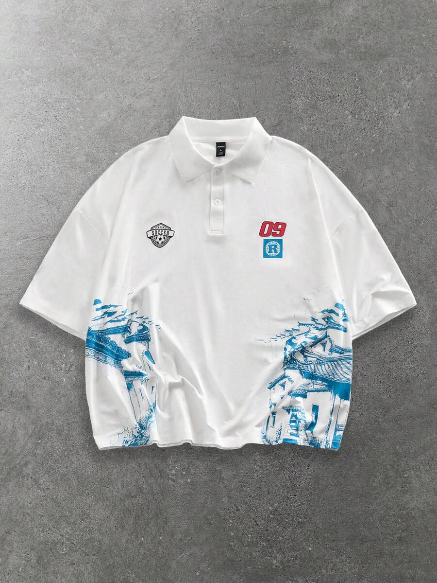 Goth Polo à col polo à manches courtes avec imprimé architectural pour hommes