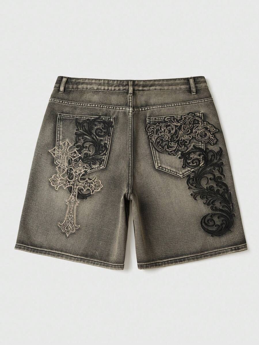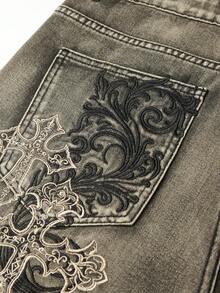 Goth Jeans en denim style casual de rue avec poche brodée pour hommes