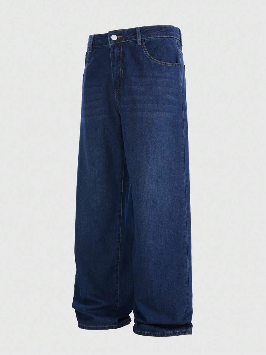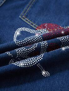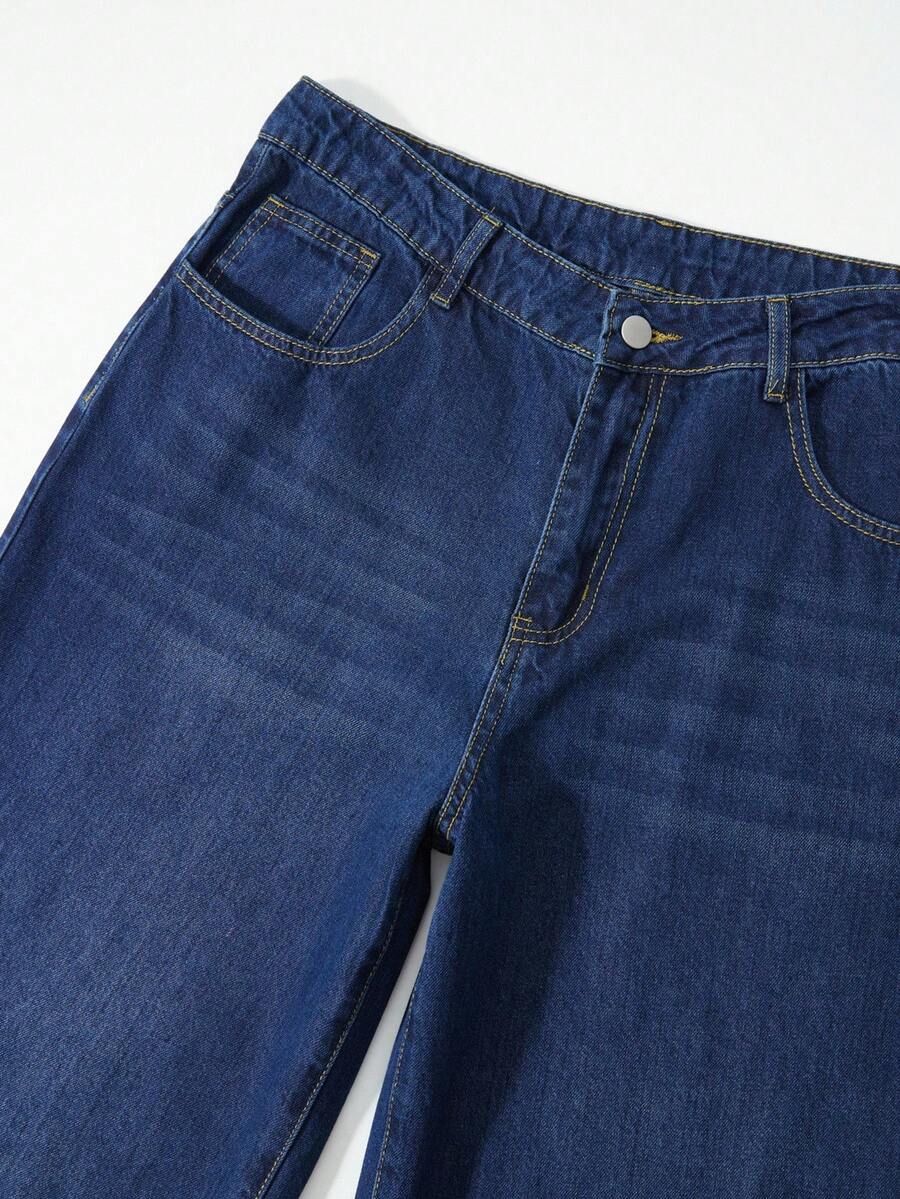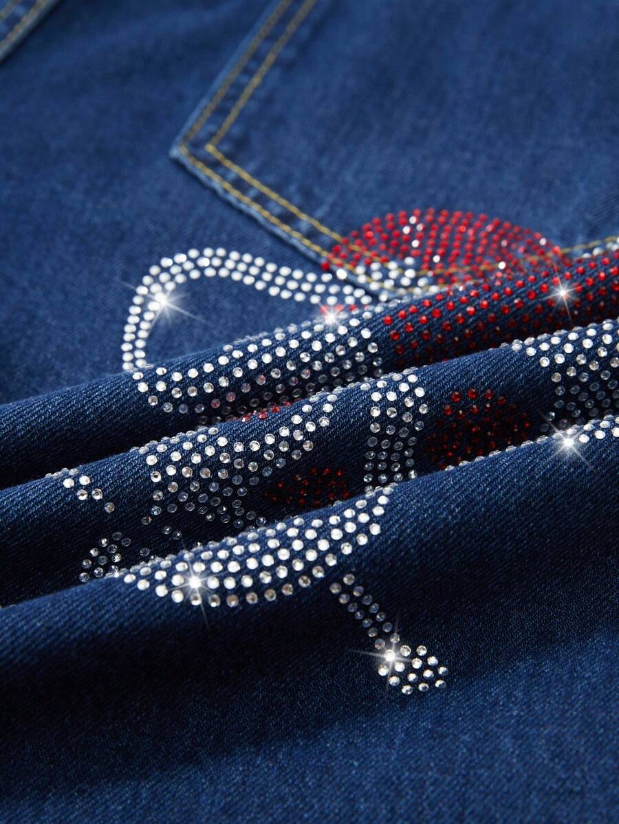 Goth Jeans en denim délavé décontracté pour hommes avec tête de crâne, strass et broderie de lettre