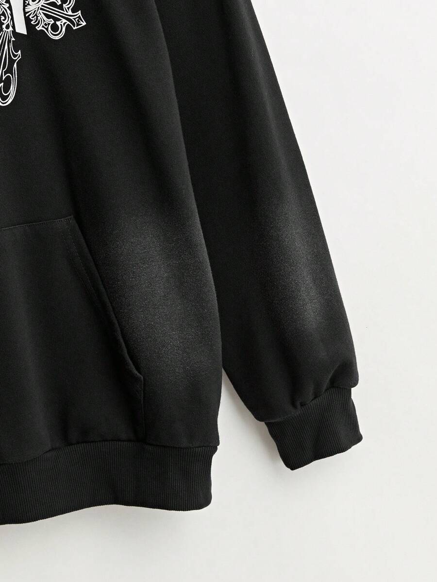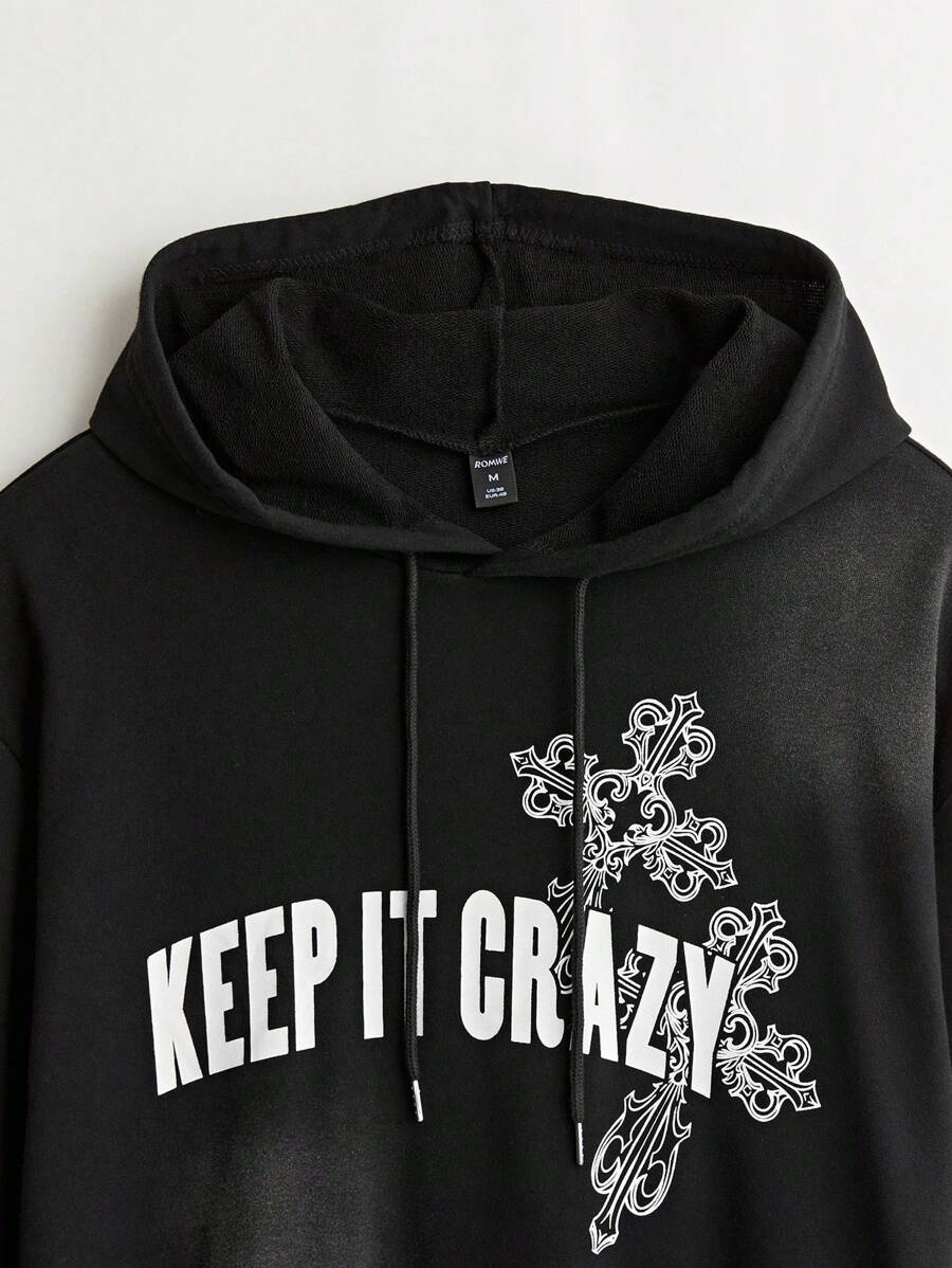 Goth Sweat-shirt à capuche avec cordon de serrage pour hommes, manches longues, imprimé lettres, décontracté, confortable et