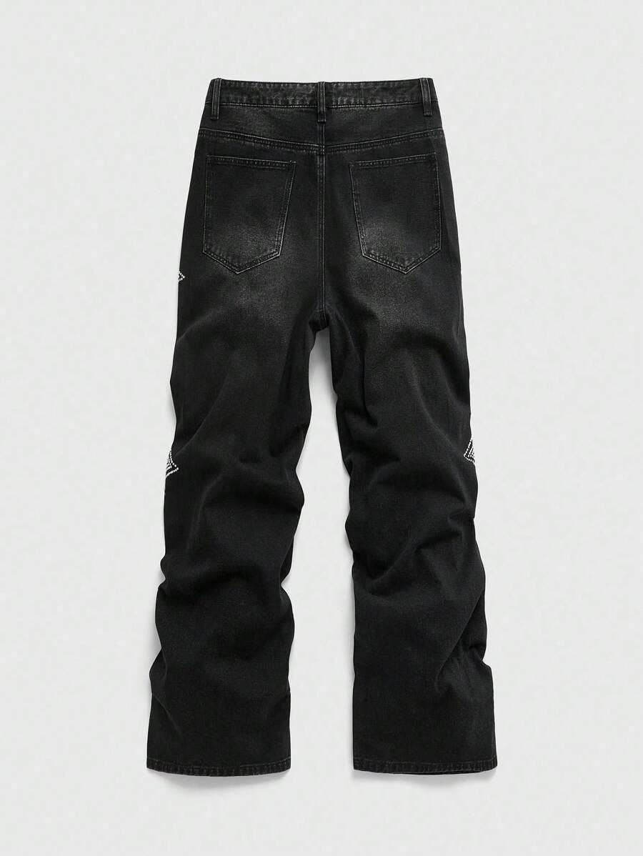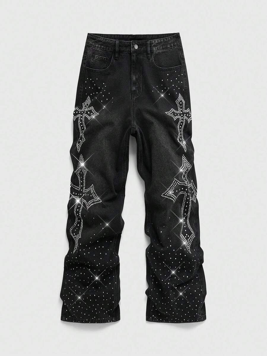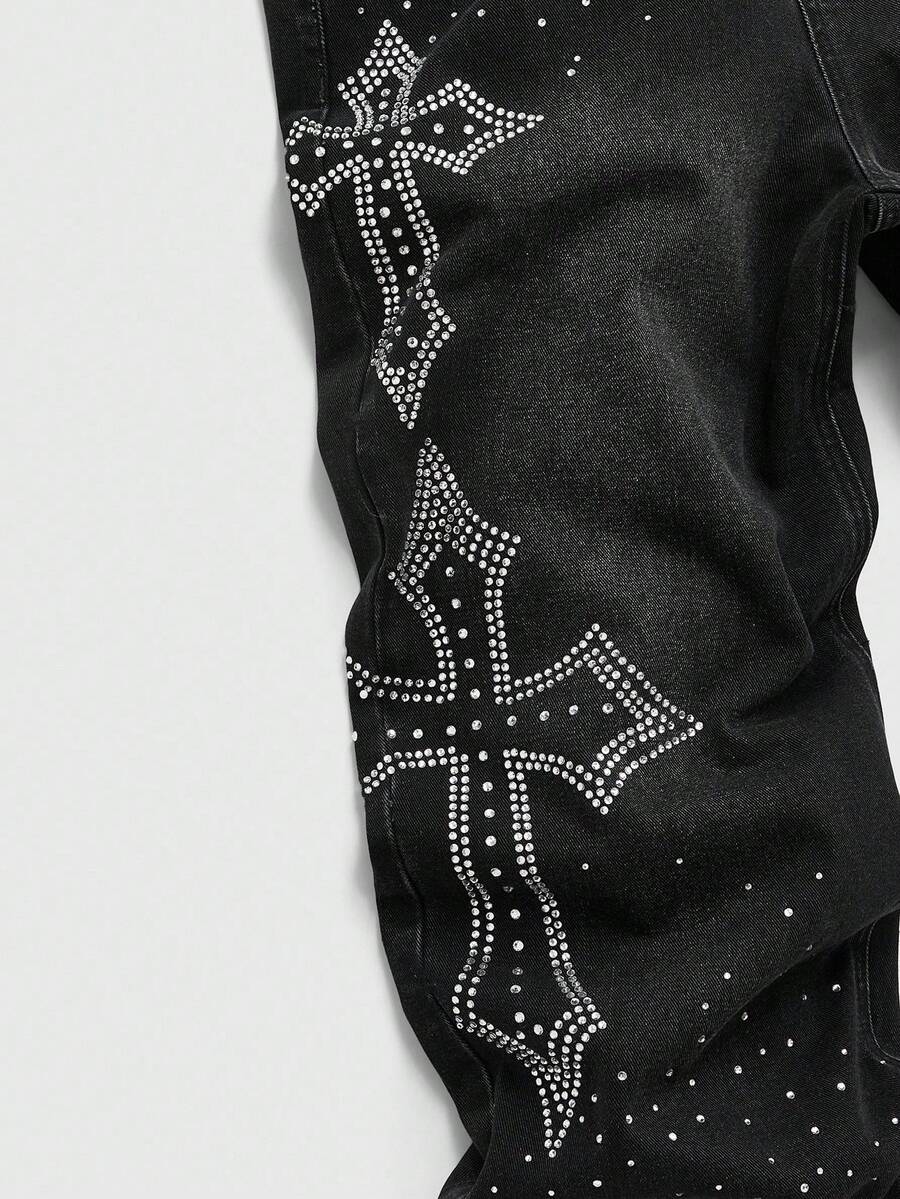 Goth Jeans de mode pour hommes avec poche ornée de strass en forme de croix